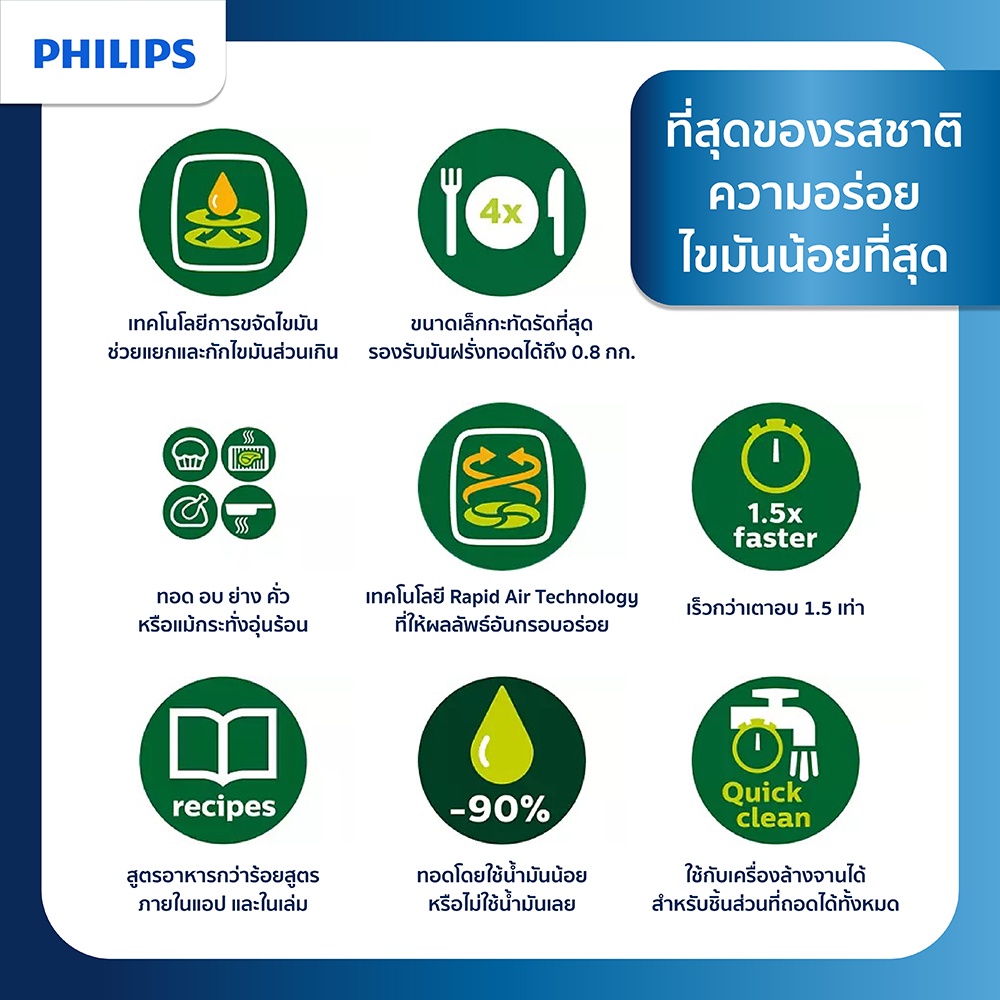 Philips AirFryer หม้อทอดอากาศ HD9721 หม้อทอดไร้น้ำมัน HD9721/11