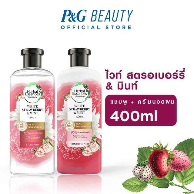 Herbal Essences White Strawberry & Sweet Mint Value Set เฮอร์บัลเอสเซนท์ ไวท์สตรอเบอรี่ แชมพู+ครีมนวด 400มล