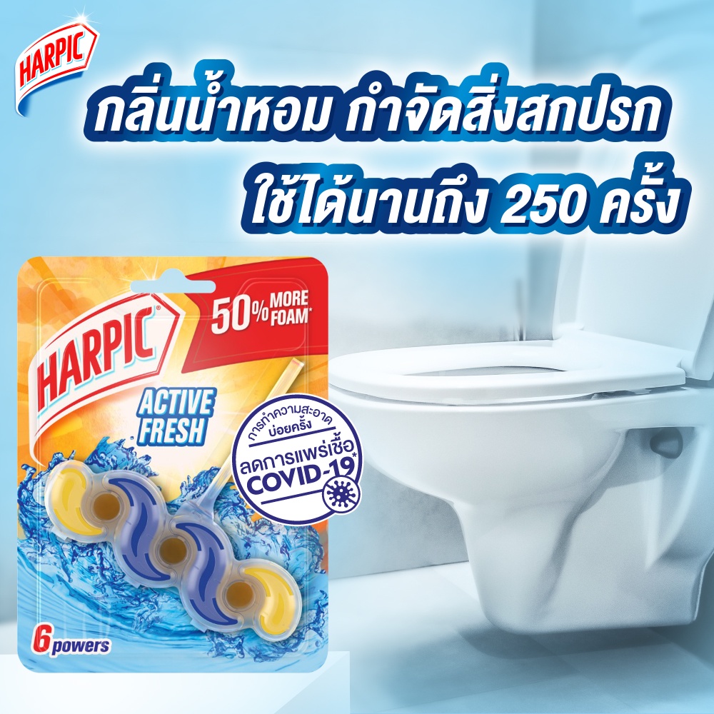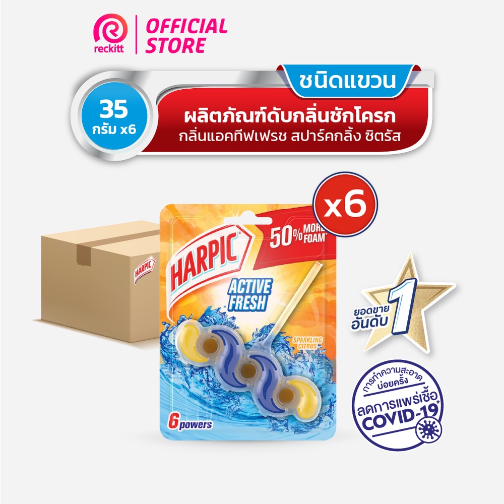 Harpic ฮาร์ปิค ดับกลิ่นชักโครก กลิ่นแอคทีฟเฟรช สปาร์คกลิ้ง ซิตรัส 35 กรัม (1 ลัง 6 ชิ้น)