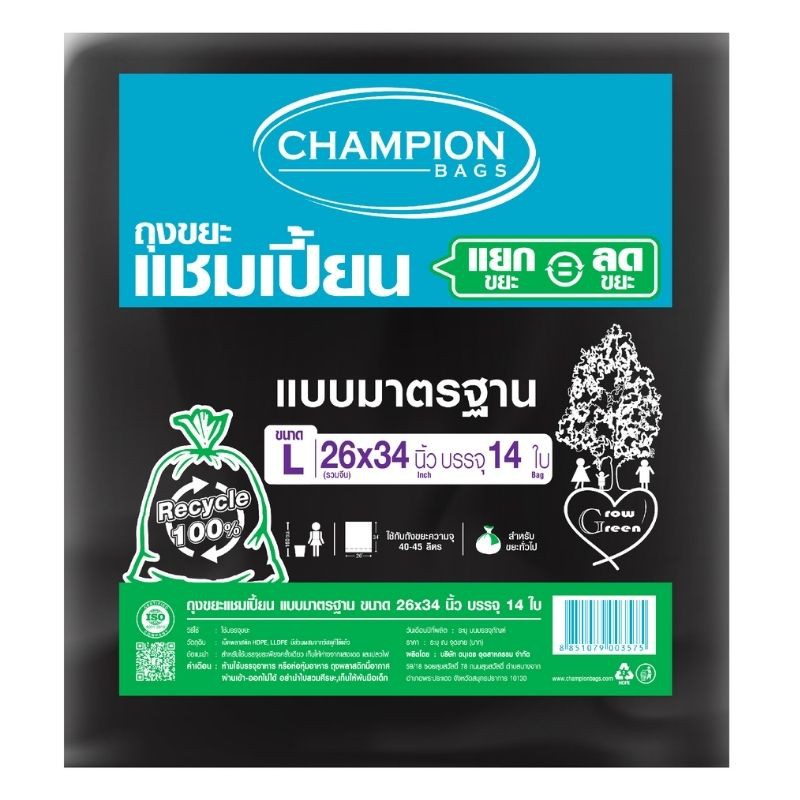 Champion bags ถุงขยะแชมเปี้ยน แบบมาตรฐาน 26" x 34" 14ใบ