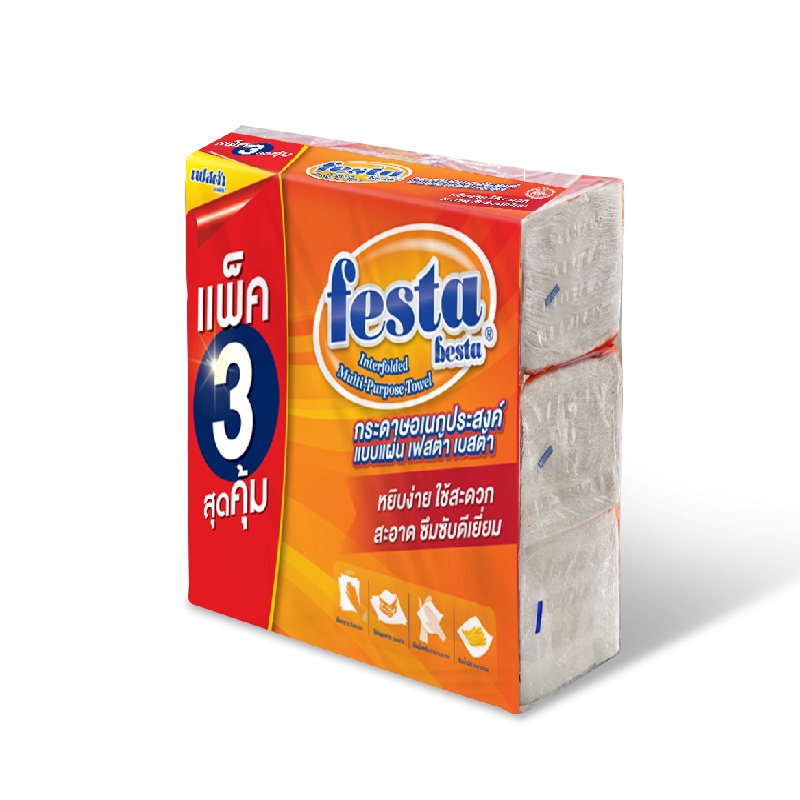Festa Besta กระดาษเอนกประสงค์ เฟสต้า 90 แผ่นคู่ *3 ห่อ