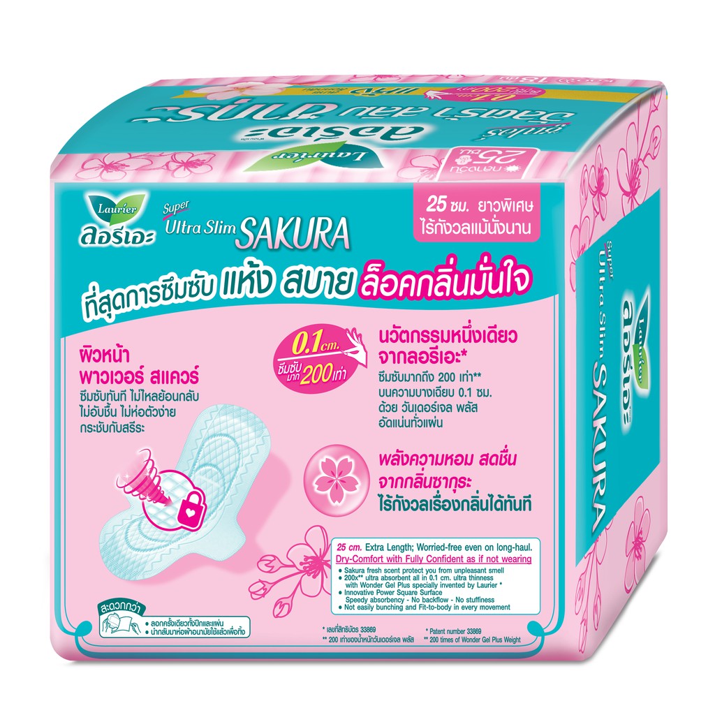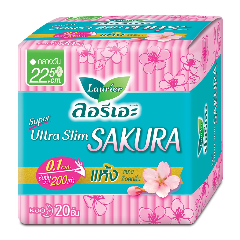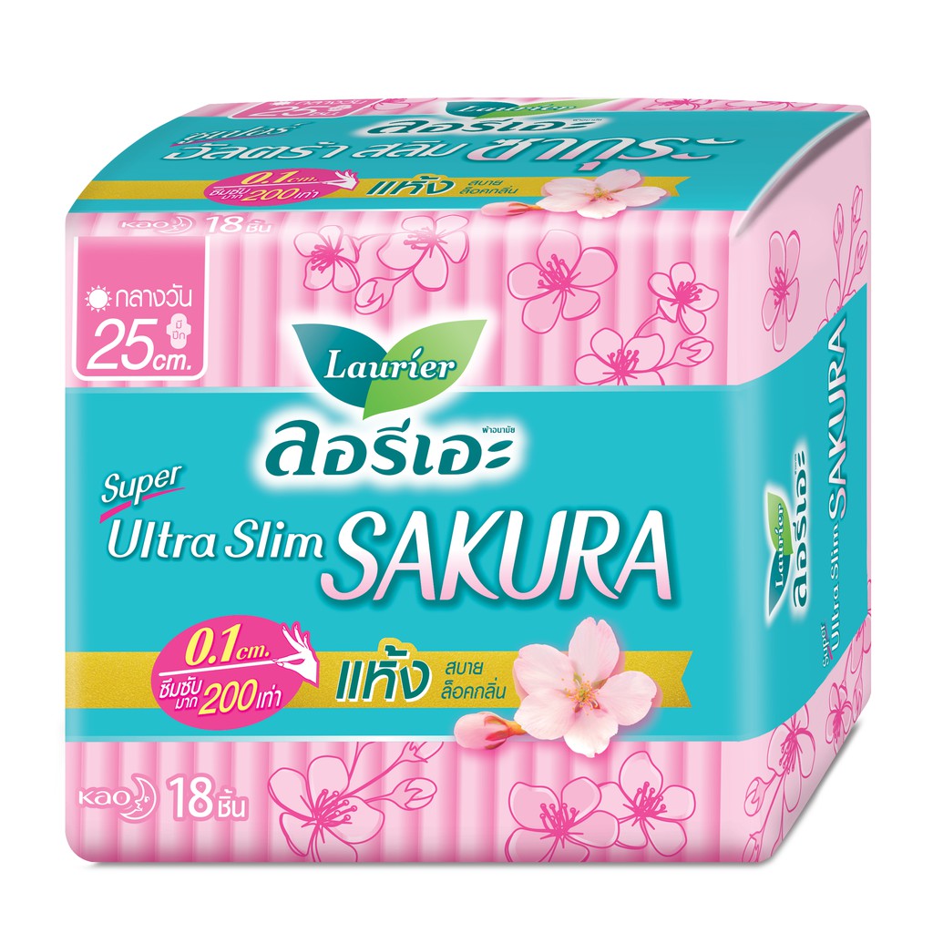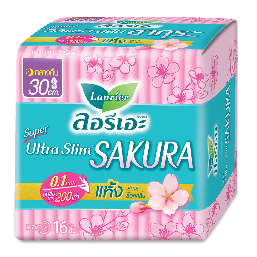 Laurier Super Ultra Slim Sakura ผ้าอนามัยลอรีเอะ ซูเปอร์ อัลตร้า สลิม ซากุระ บางเฉียบ 0.1 (เลือกขนาด)