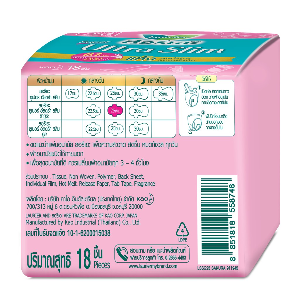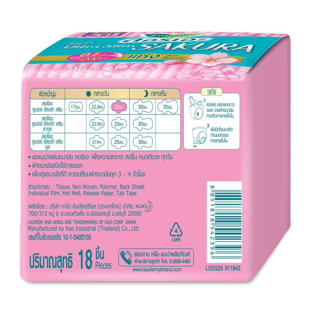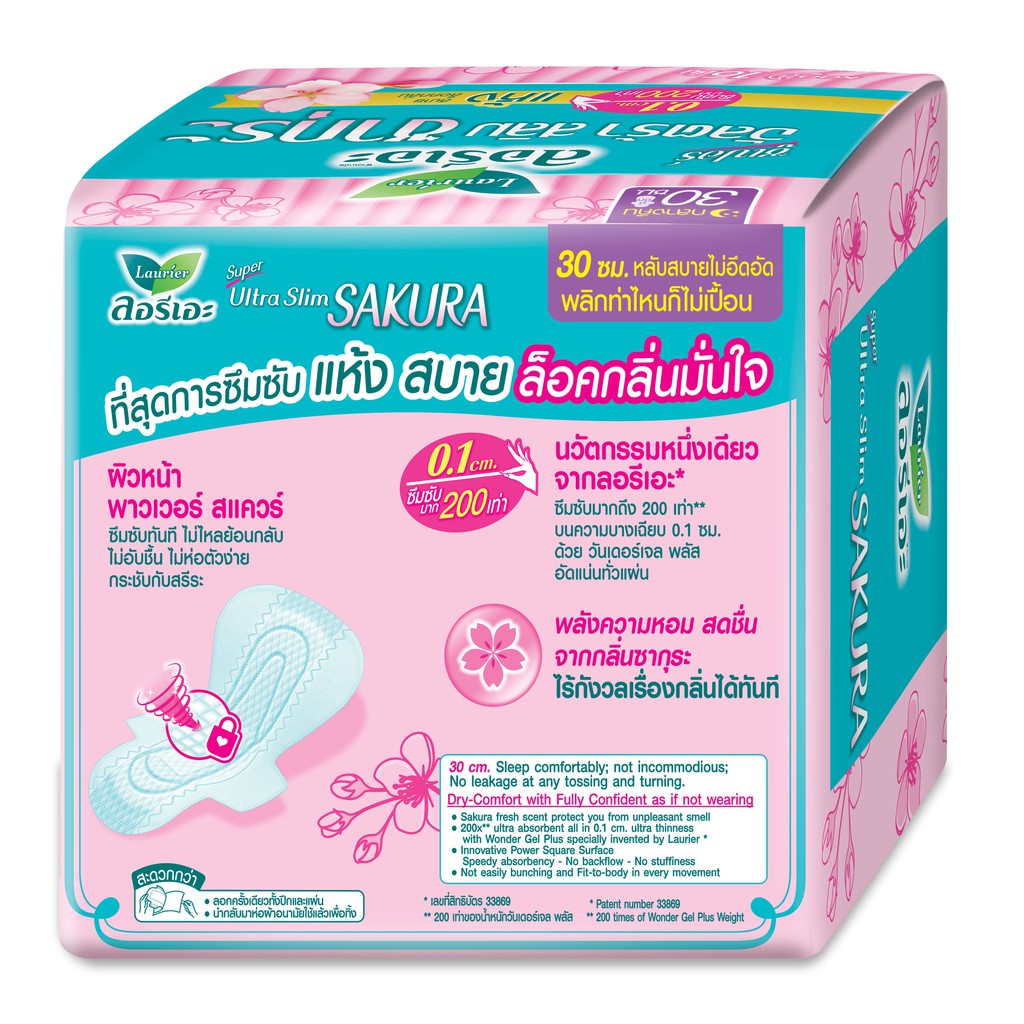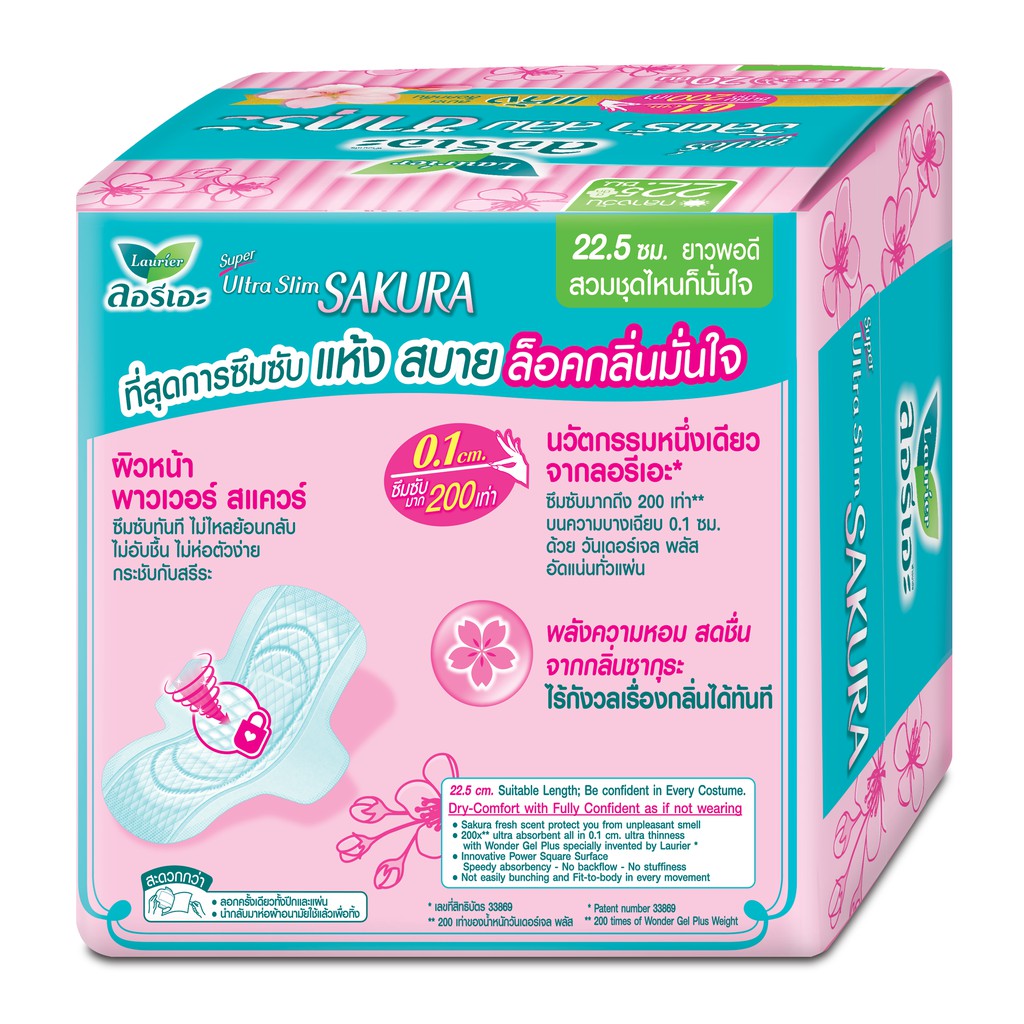 Laurier Super Ultra Slim Sakura ผ้าอนามัยลอรีเอะ ซูเปอร์ อัลตร้า สลิม ซากุระ บางเฉียบ 0.1 (เลือกขนาด)