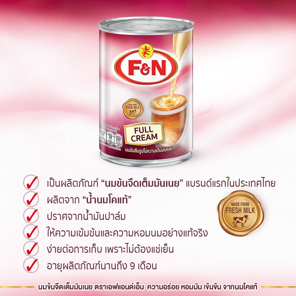 F&N Brand นมข้นคืนรูปไม่หวานเต็มมันเนย สำหรับเครื่องดื่มและเบเกอรี (ตราเอฟแ อนด์เอ็น) 370 ml.