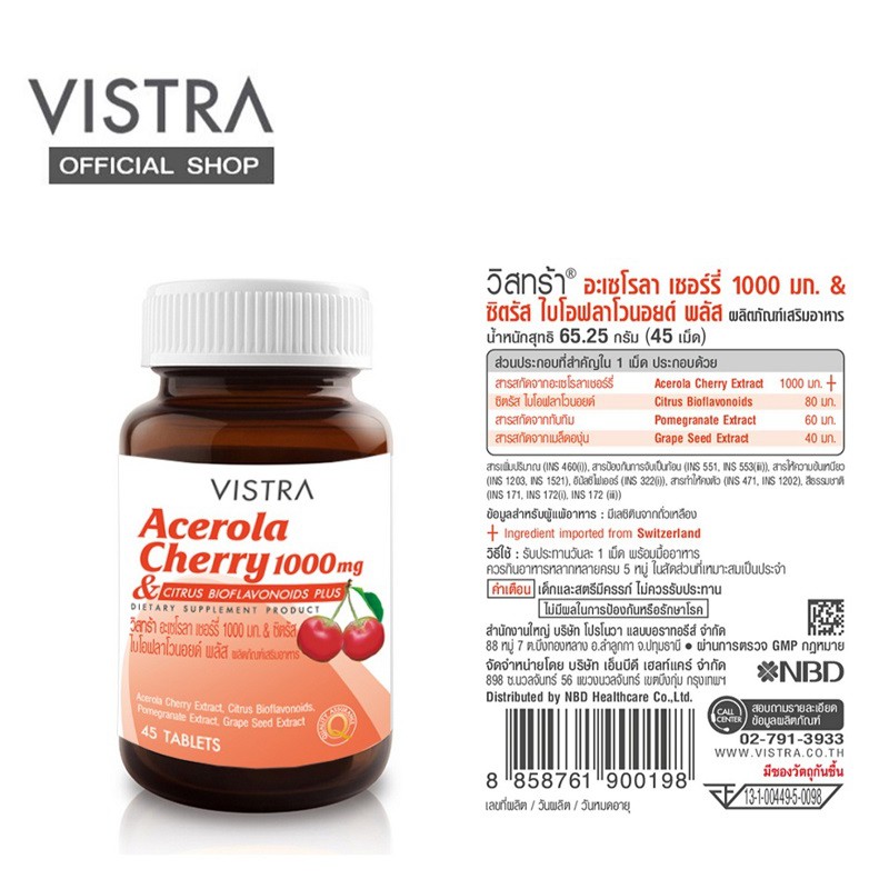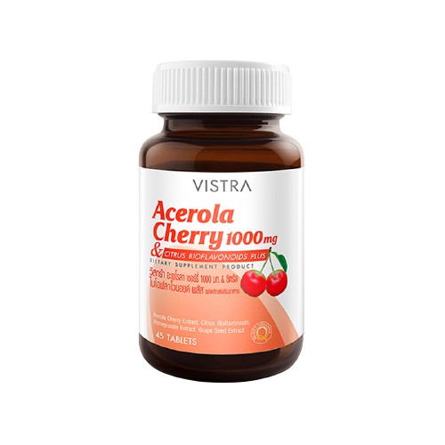 VISTRA Acerola Cherry 1000 mg. 62.25g. (45 Tablets):Acerola Cherry 65.25 g