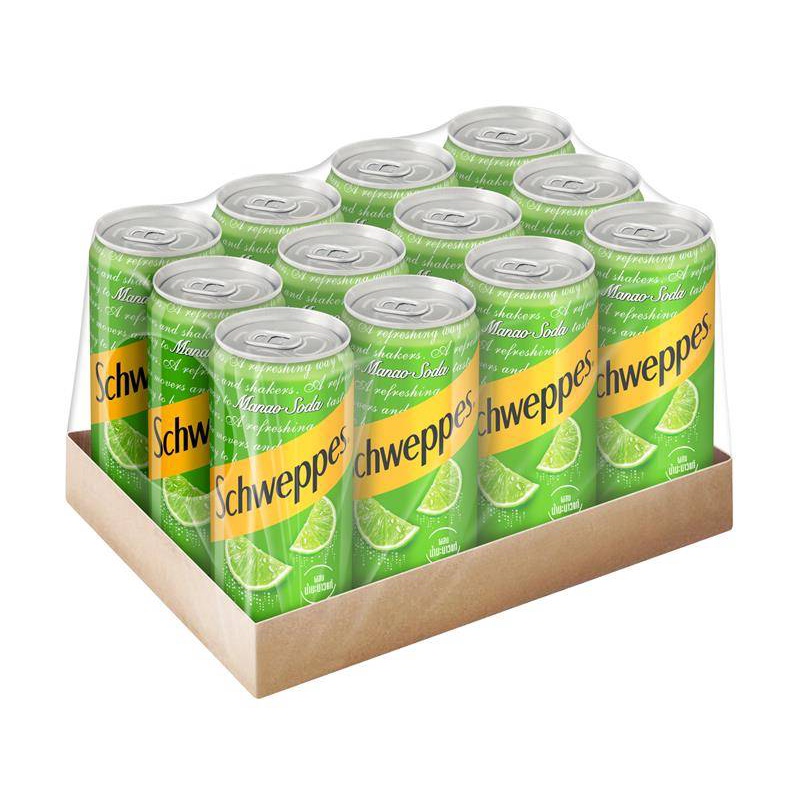 ชเวปส์ น้ำอัดลม มะนาวโซดา 330 มล. 12 กระป๋อง Schweppes Soft Drink Lime Soda 330ml Pack 12