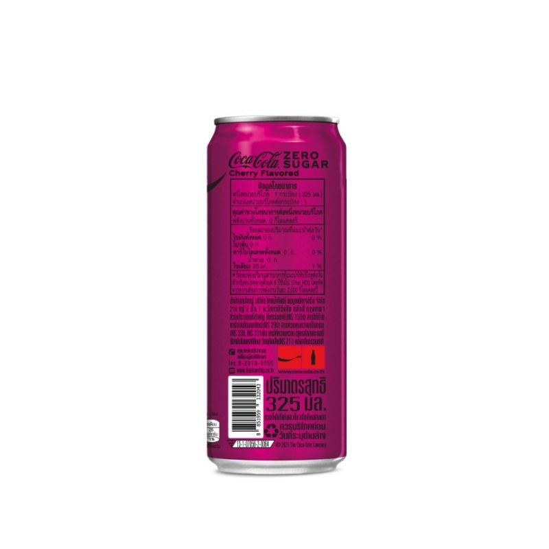 โค้ก น้ำอัดลม สูตรไม่มีน้ำตาล กลิ่นเชอร์รี 325 มล. Coke Soft Drink Zero Sugar Cherry 325ml