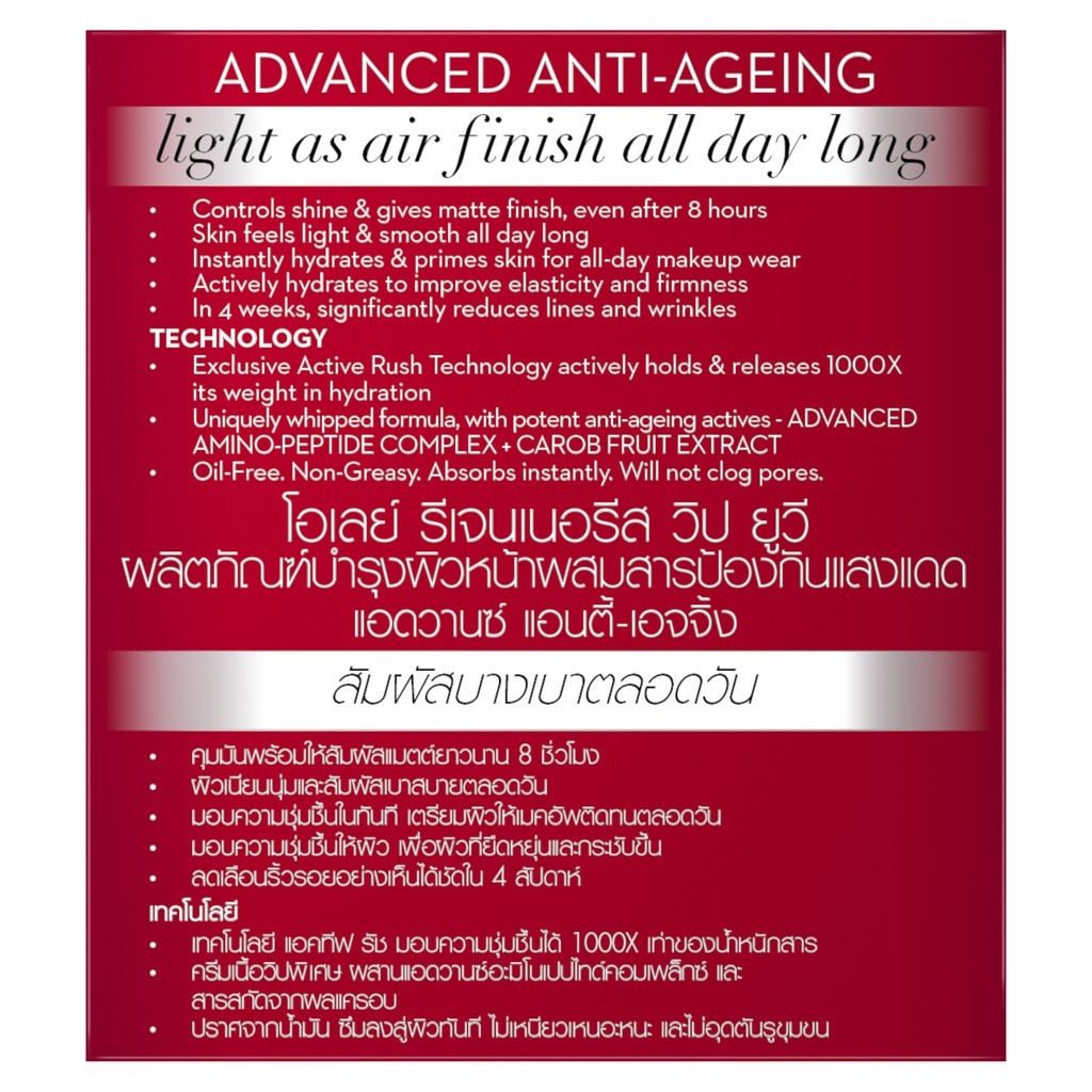 Olay โอเลย์ รีเจนเนอรีส วิป ยูวี SPF30 ครีมบำรุงผิวเนื้อเบา สูตรลดเลือนริ้วรอยผสมกันแดด 50กรัม (บำรุงผิวหน้า/ครีมกันแดด)