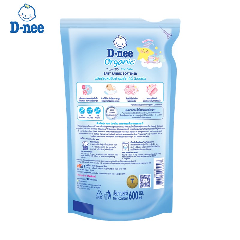 D-nee Newborn น้ำยาปรับผ้านุ่ม กลิ่น Happiness ชนิดเติม ขนาด 600 มล. (แพ็ค 3)
