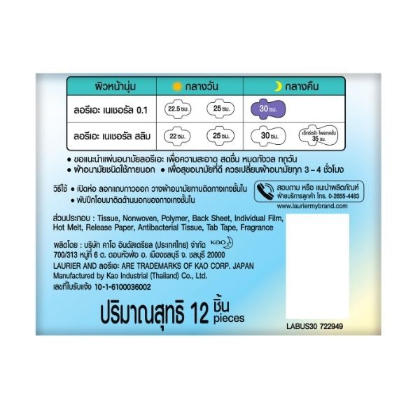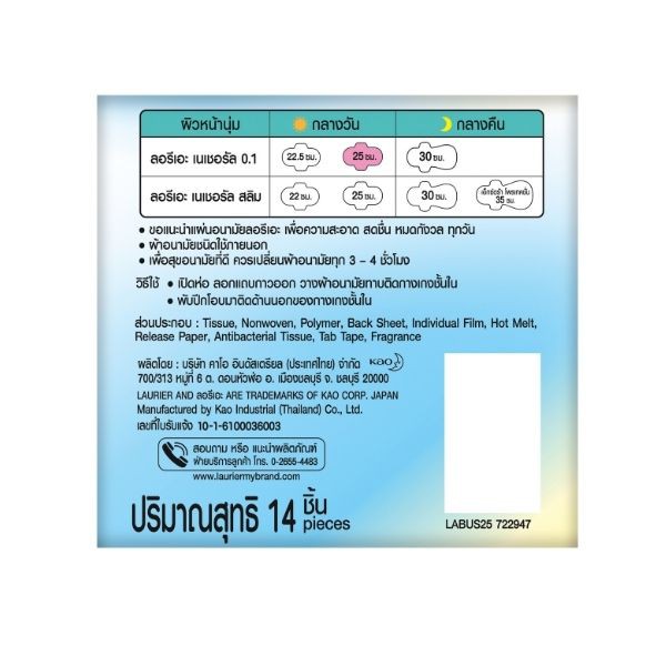 Laurier Natural Anti-Bac ผ้าอนามัยลอรีเอะ เนเชอรัล แอนตี้แบค สลิม (เลือกขนาด)