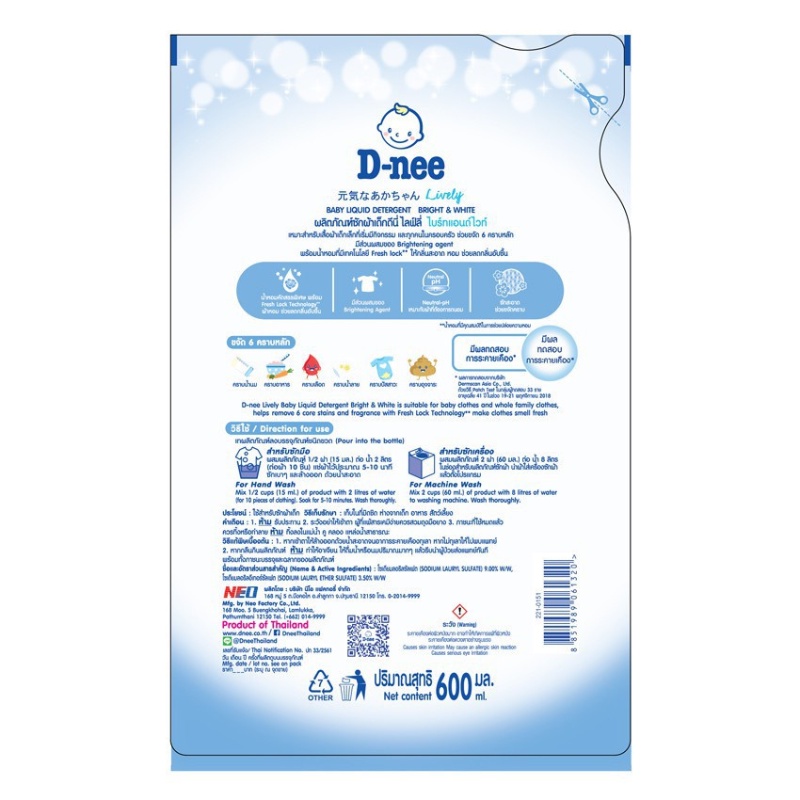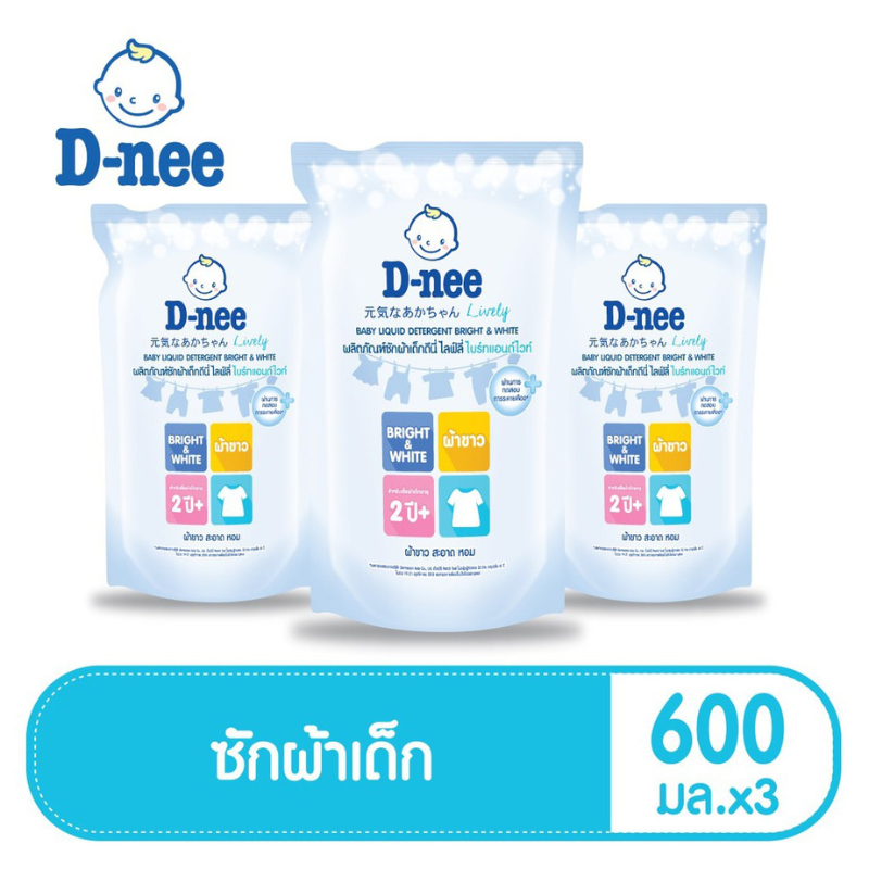D-nee Lively น้ำยาซักผ้าเด็ก Bright & White ชนิดเติม ขนาด 600 มล. (แพ็ค 3)
