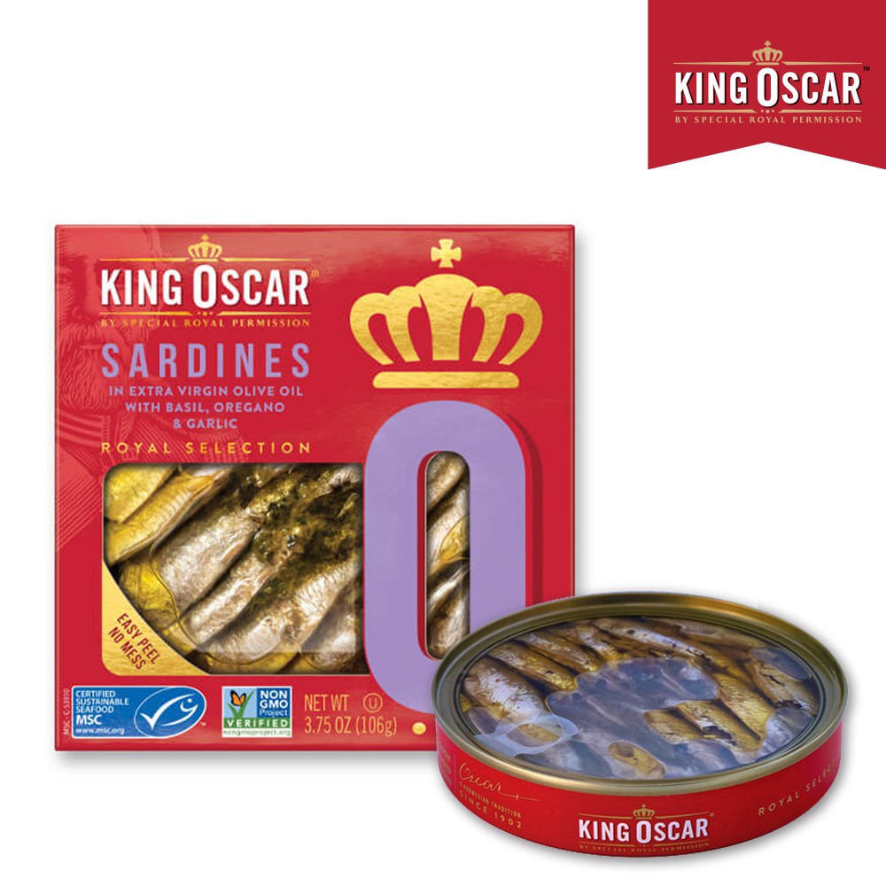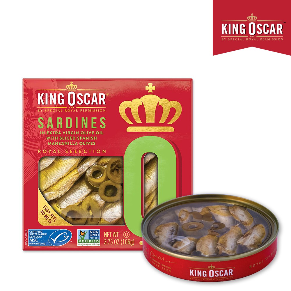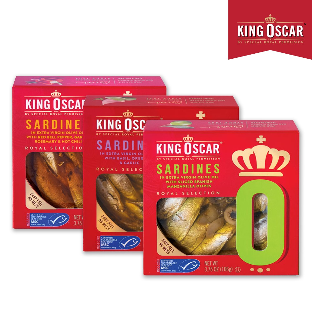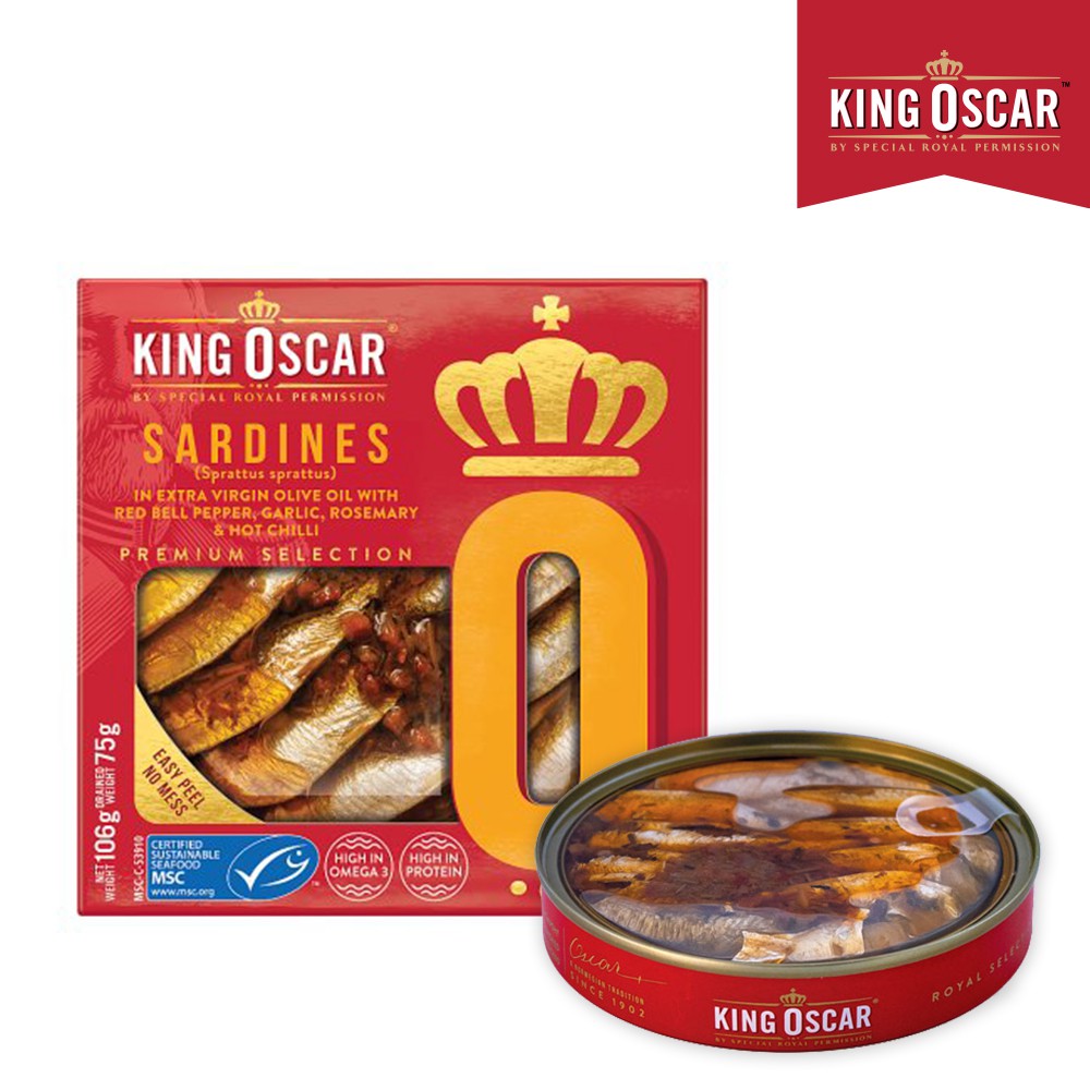 King Oscar คิง ออสการ์ บริสลิ่งซาร์ดีนในน้ำมันมะกอกบริสุทธิ์ 106g (เลือกรสได้)
