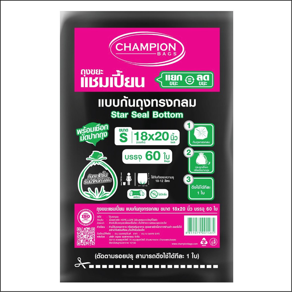 Champion bags ถุงขยะแชมเปี้ยน แบบก้นทรงกลม 18"x20" 60 ใบ