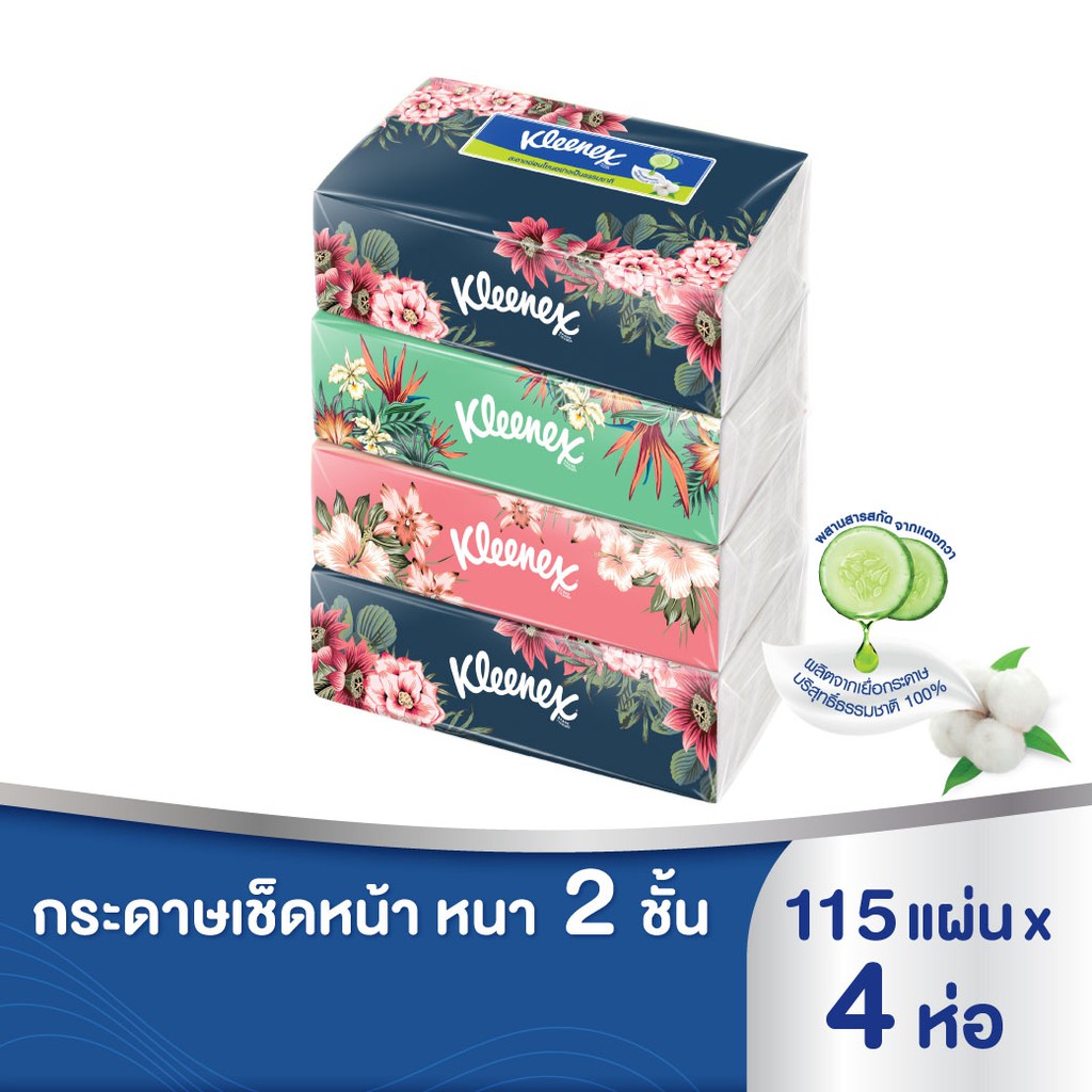 [ขายดี] คลีเน็กซ์ กระดาษเช็ดหน้า หนา2ชั้น ลายเพทเทิล 110แผ่น แพ็ค 4 ห่อ