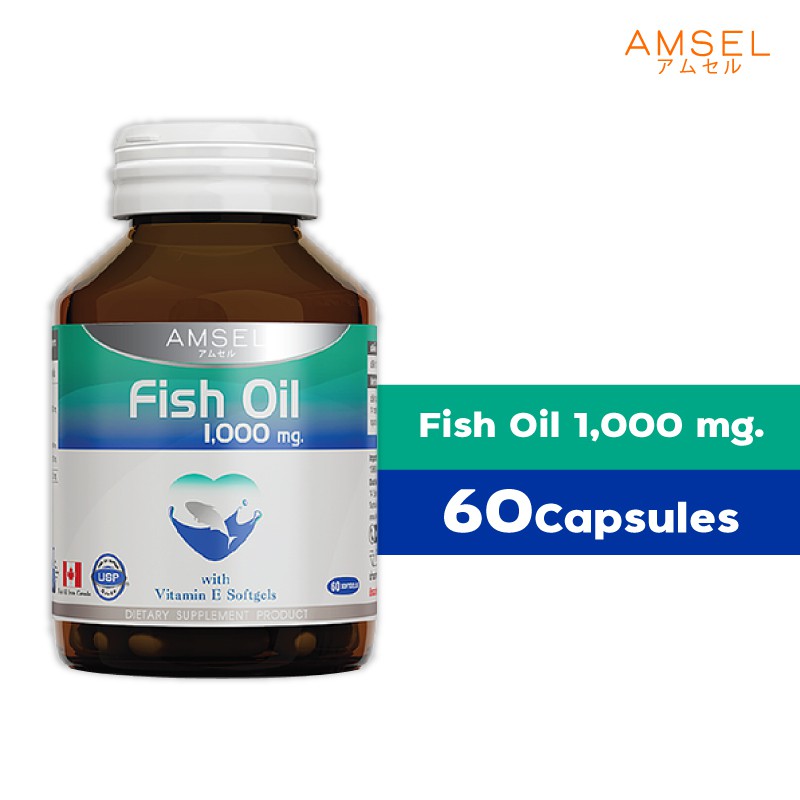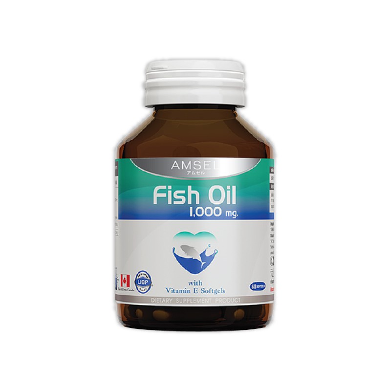 Amsel Fish Oil With Vitamin E 60's แอมเซล ฟิชออยล์ น้ำมันปลา (60 แคปซูล) 75.53 g