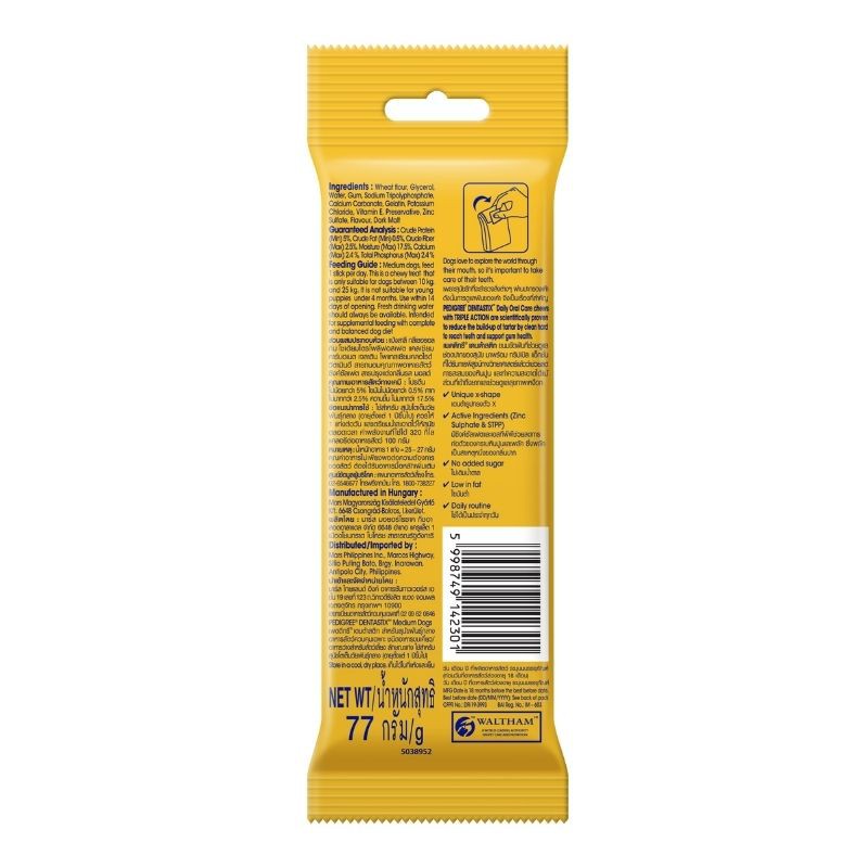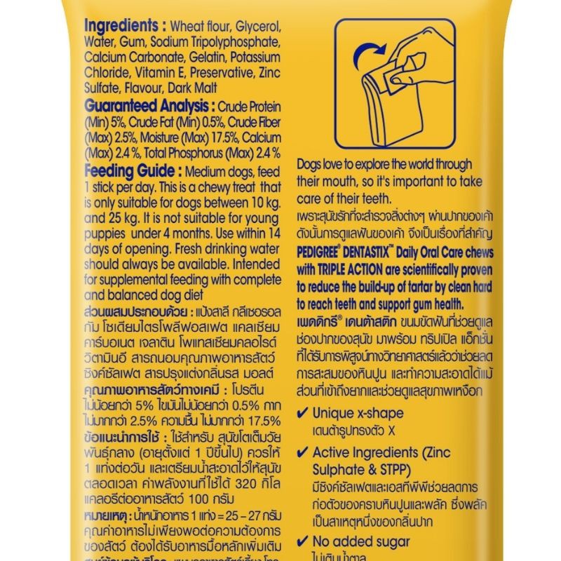 Pedigree เพดดิกรี ขนมขัดฟัน เดนต้าสติ๊ก สำหรับสุนัขพันธุ์กลาง 3 แท่ง ขนาด 77 กรัม