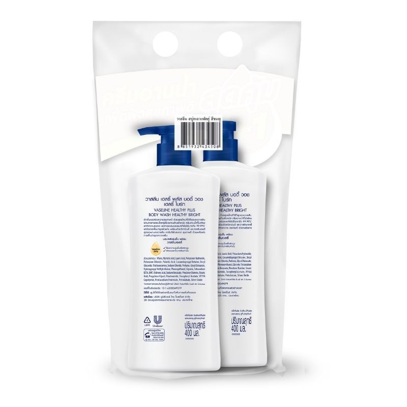 [ขายดี] Vaseline วาสลีน เฮลธี พลัส ครีมอาบน้ำ เฮลธี้ไบร์ท สีชมพู 400 มล. แพ็คคู่-สีช มพู