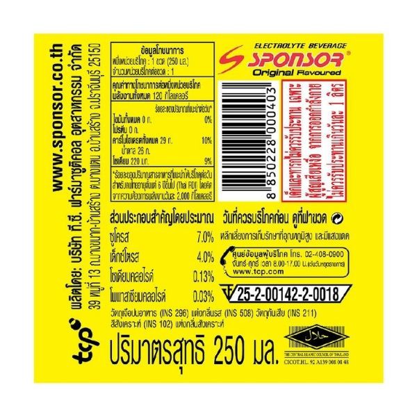 Sponsor สปอนเซอร์ เครื่องดื่มเกลือแร่ 250 มล. ออริจินัล