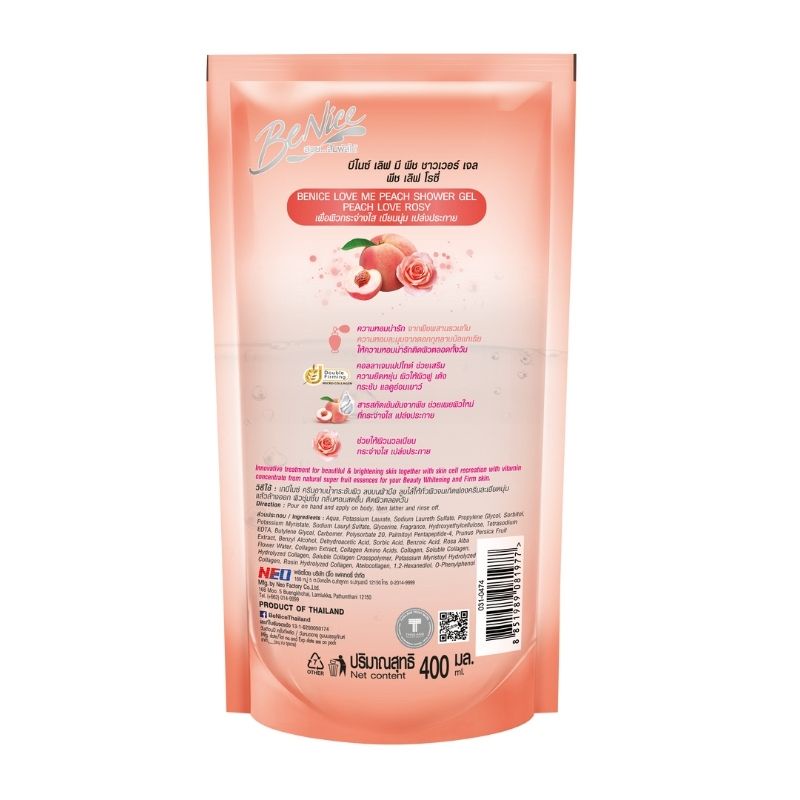Benice บีไนซ์ เลิฟ มี พีช ชาวเวอร์เจล ถุงเติม 400 มล. (เลือกสูตรได้)
