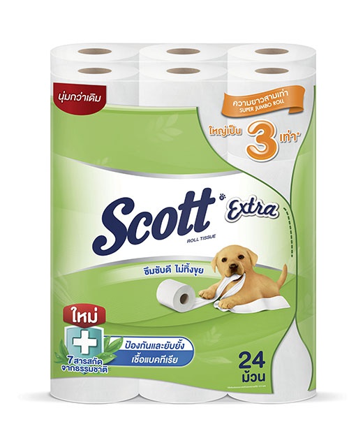 สก๊อตต์ เอ็กซ์ตร้า กระดาษชำระ ความยาวสามเท่า หนา2ชั้น 24 ม้วน SCOTT EXTRA Super Jumbo Roll Tissue 2 Ply 24 Rolls