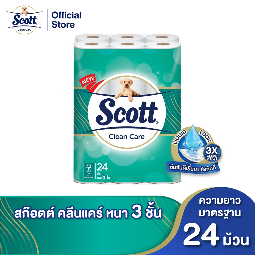 [ขายดี] สก๊อตต์ คลีนแคร์ กระดาษชำระ หนา 3ชั้น ขนาด 24 ม้วน SCOTT CLEAN CARE Toilet Tissue 3 Ply 24 Rolls