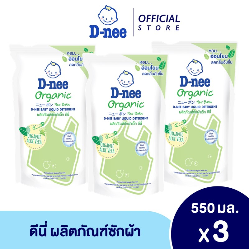 D-nee Newborn น้ำยาซักผ้าเด็ก Organic Aloe Vera ชนิดเติม ขนาด 550 มล. (แพ็ค 3)