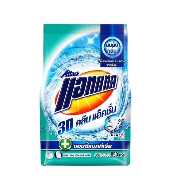 แอทแทค 3D คลีน แอ็คชั่น ผงซักฟอก สูตรเข้มข้น 850 G Attack 3D Clean Action Powder Detergent 850G
