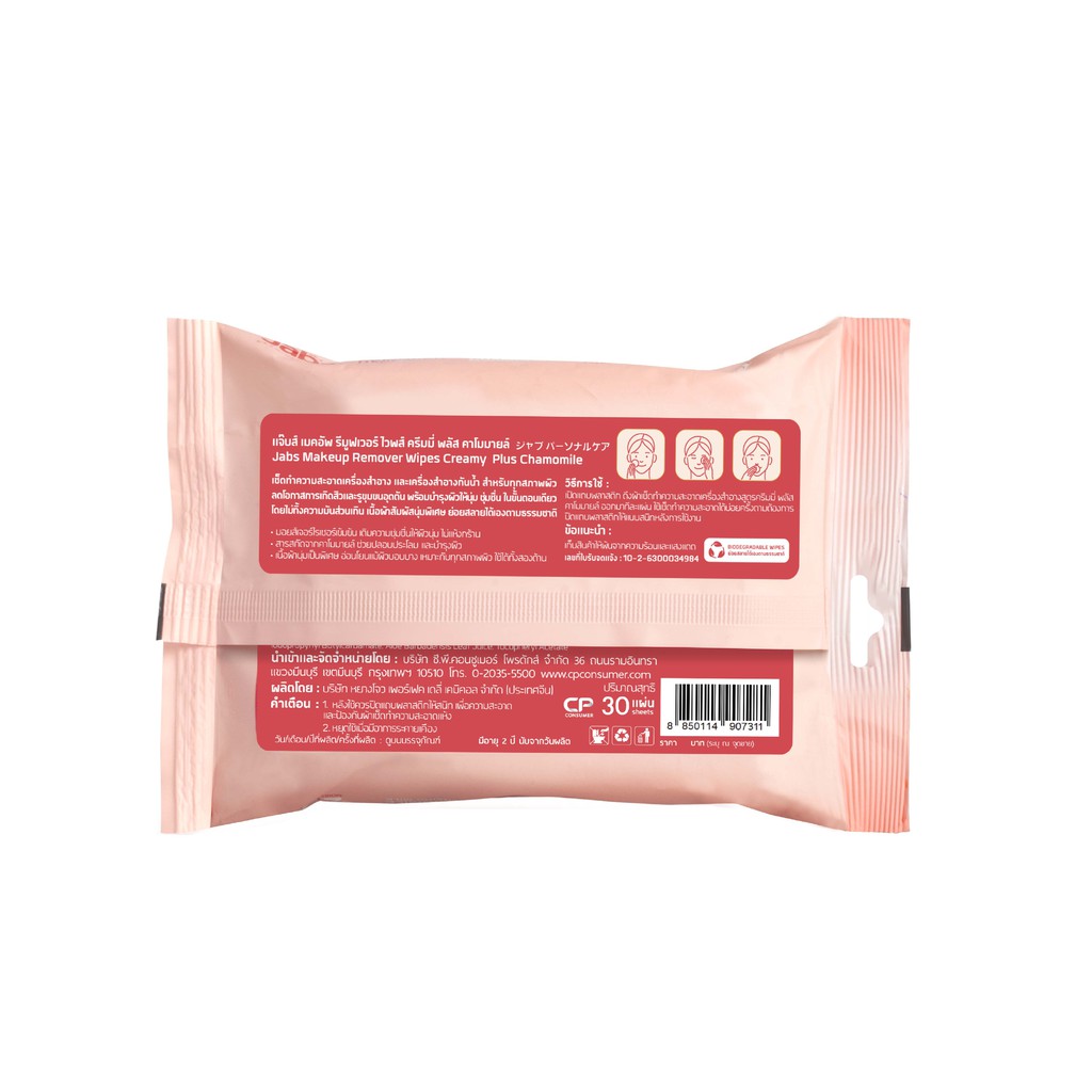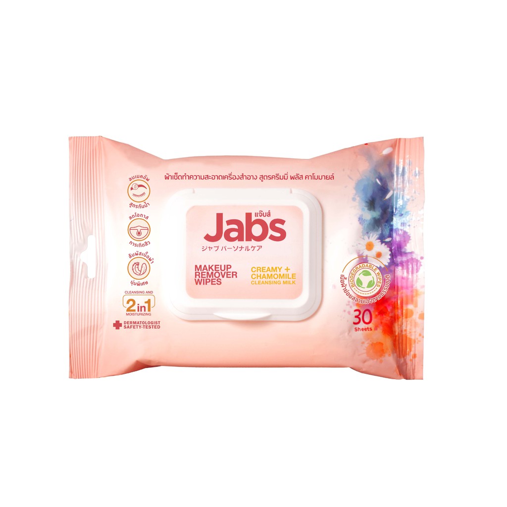 Jabs แจ๊บส์ คลีนซิ่งมิลค์ เมคอัพรีมูฟเวอร์ ไวพ์ สูตร ครีมมี่+คาโมมายด์ 30แผ่น แพ๊ค