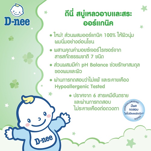 D-nee ผลิตภัณฑ์เด็กดีนี่ สบู่เหลวอาบและสระ ออร์แกนิค 350 มล. (แพ็คคู่)