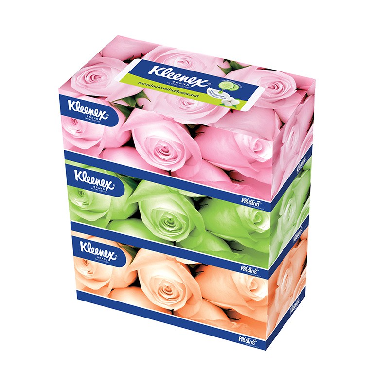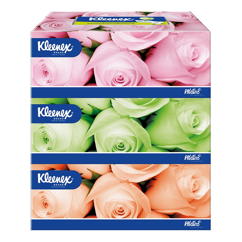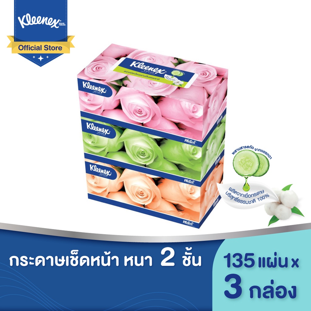 คลีเน็กซ์ กระดาษเช็ดหน้า หนา2ชั้น ลายดอกไม้ 135แผ่น แพ็ค 3 กล่อง Kleenex Facial Tissue (2Ply) Floral Box Pack3