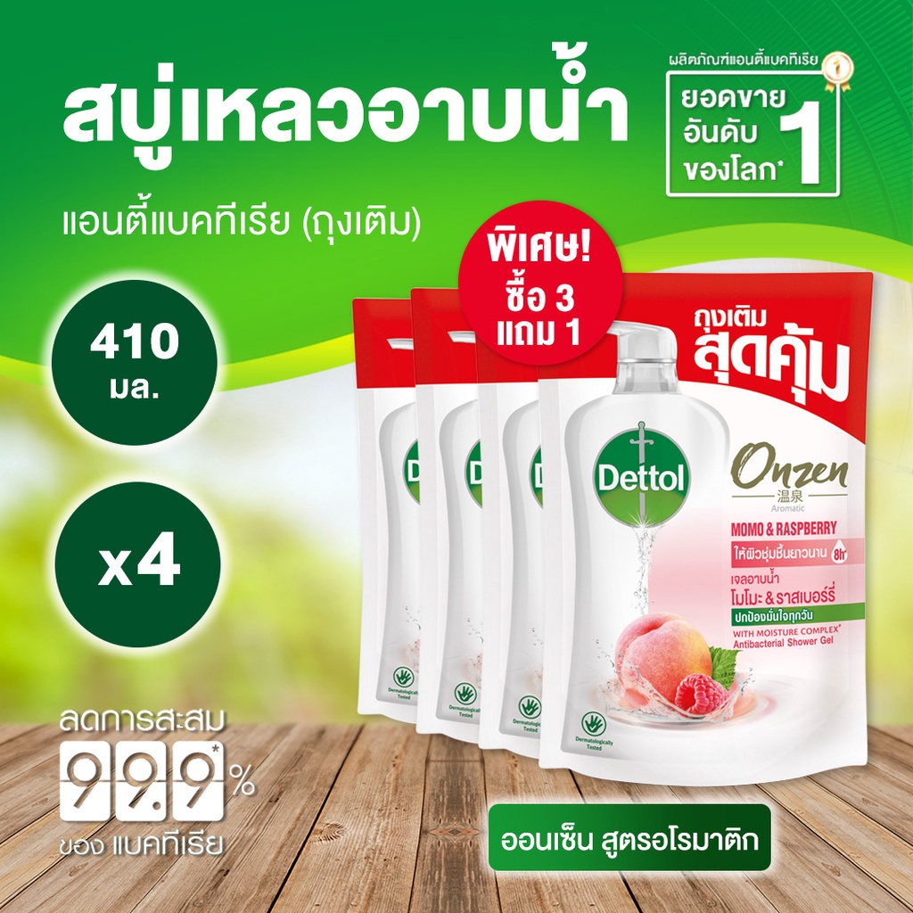 Dettol เจลอาบน้ำชนิดถุงเติม ออนเซ็น อโรมาติก 410 กรัม (ซื้อ 3 แถม 1)