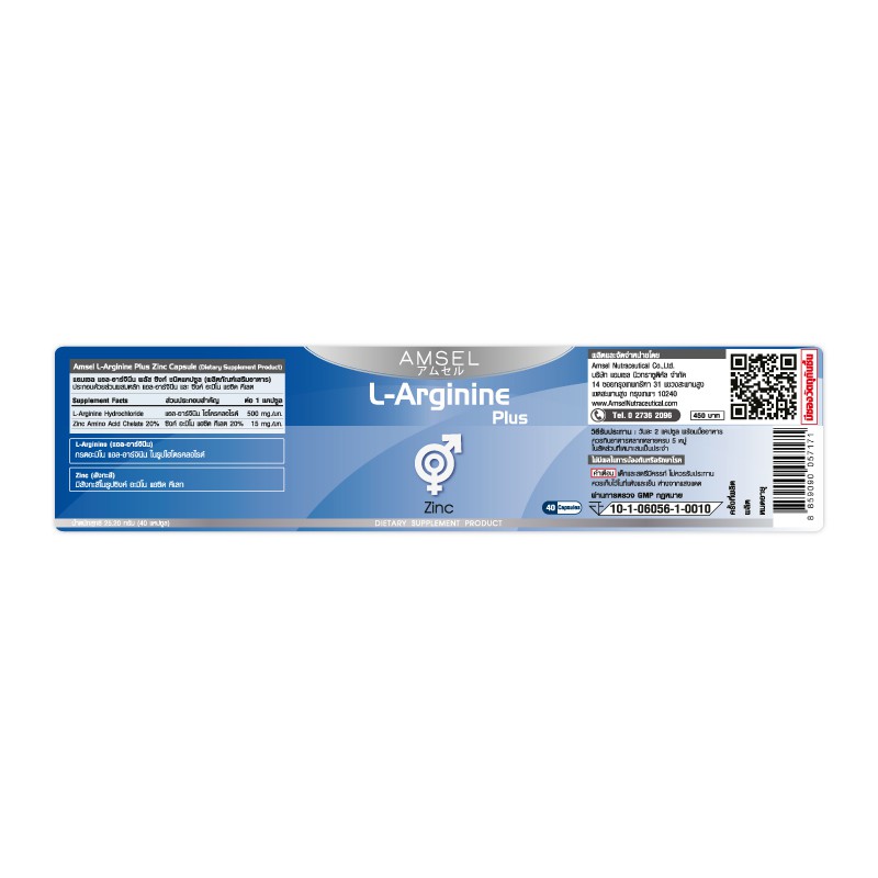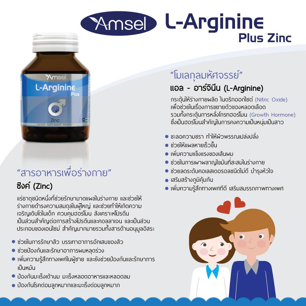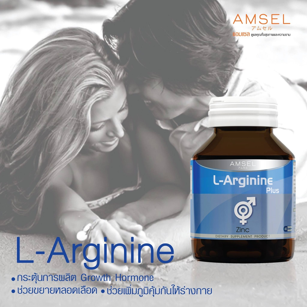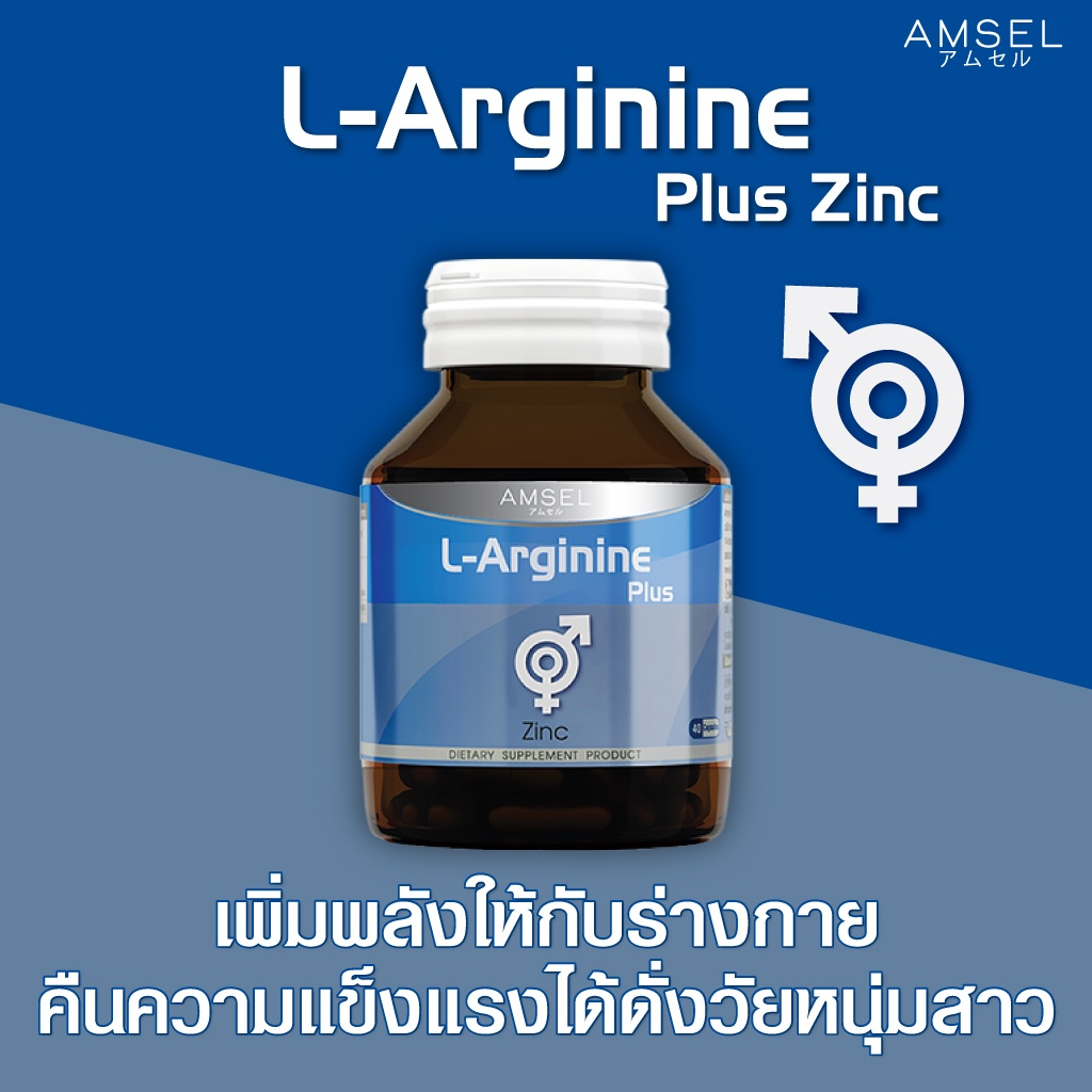 Amsel L-Arginine Plus Zinc 40's แอมเซล แอล-อาร์จินีน พลัส ซิงค์ (40 แคปซูล) 25.20กรัม