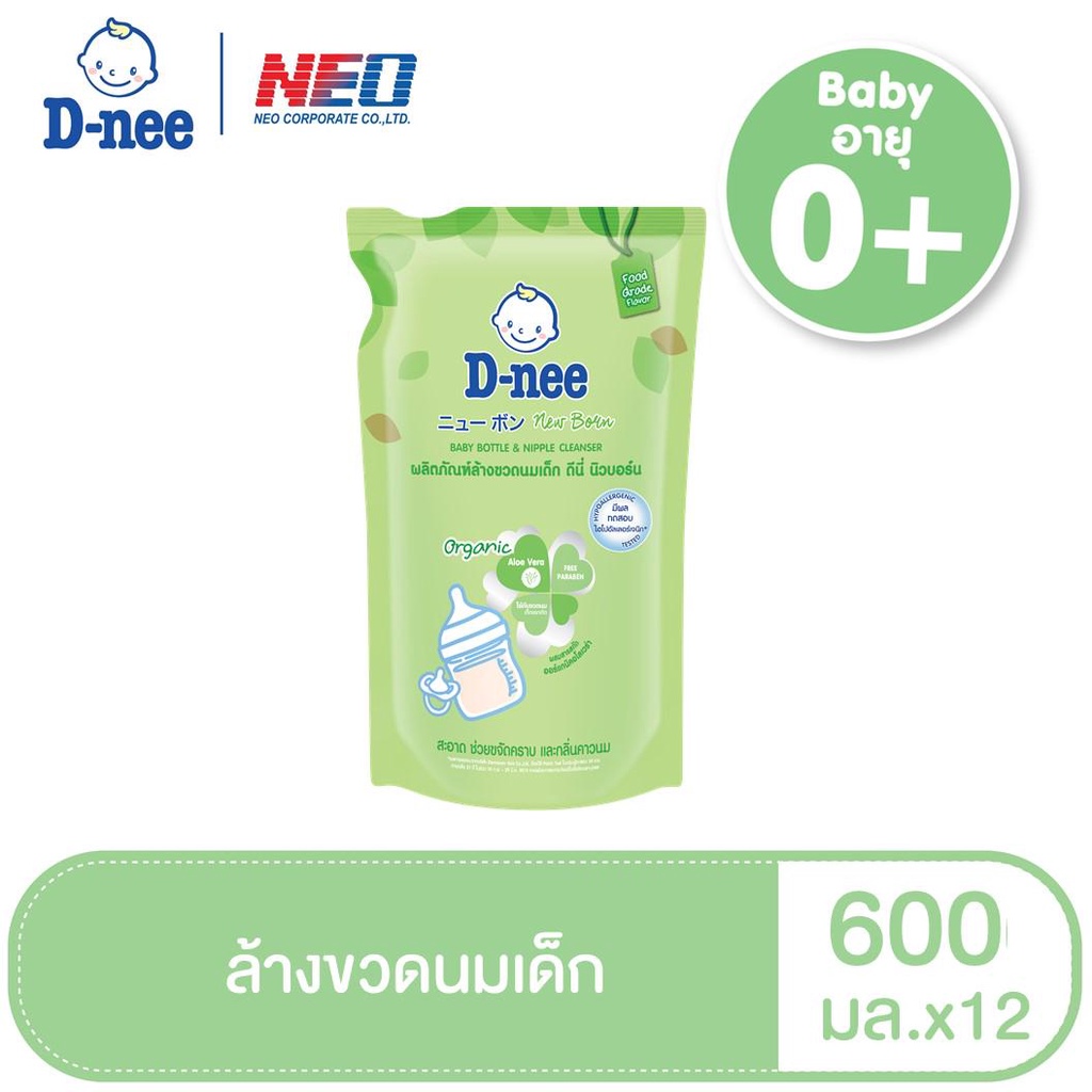 D-nee น้ำยาล้างขวดนมดีนี่ ออร์แกนิค ถุงเติม 600 มล. X12