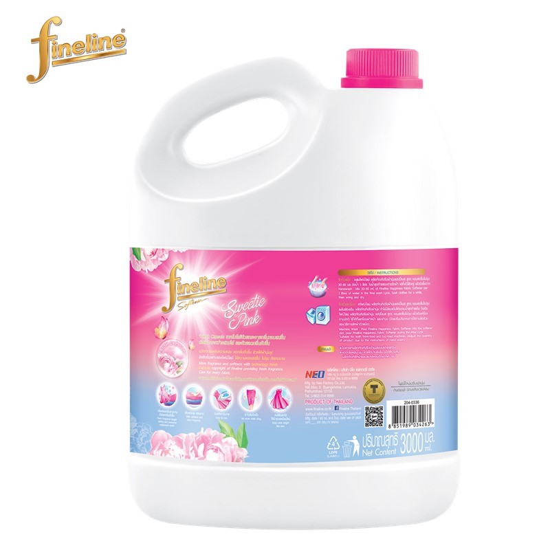 ไฟน์ไลน์ ผลิตภัณฑ์ปรับผ้านุ่มแฮปปี้เนส กลิ่น สวีต พิ้งค์ 3000 มล. สีชมพู