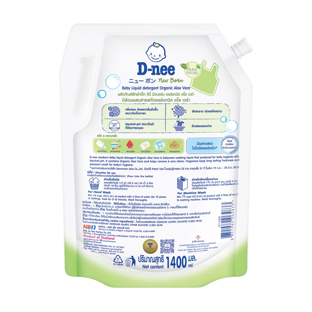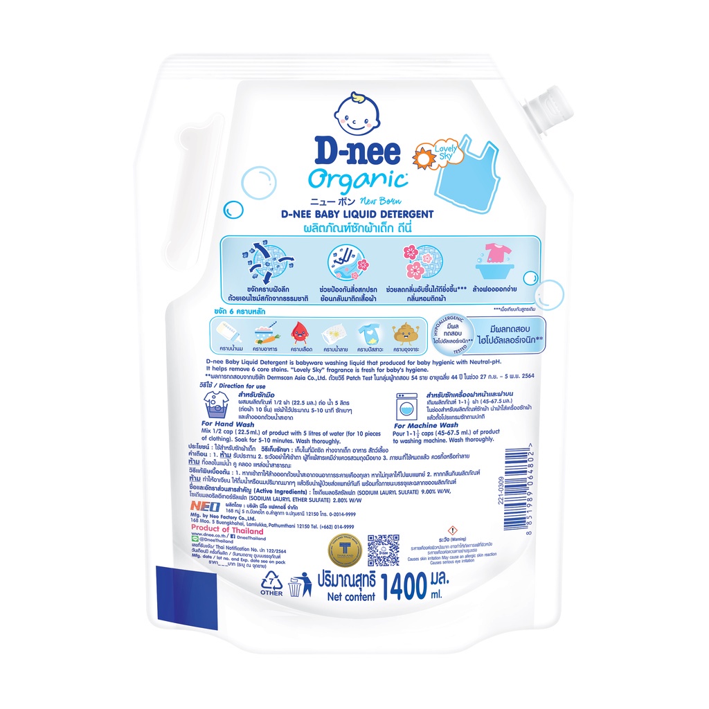[1แถม1] D-nee ผลิตภัณฑ์ซักผ้าเด็กดีนี่ นิวบอร์น 1400 มล. (เลือกสูตรได้)