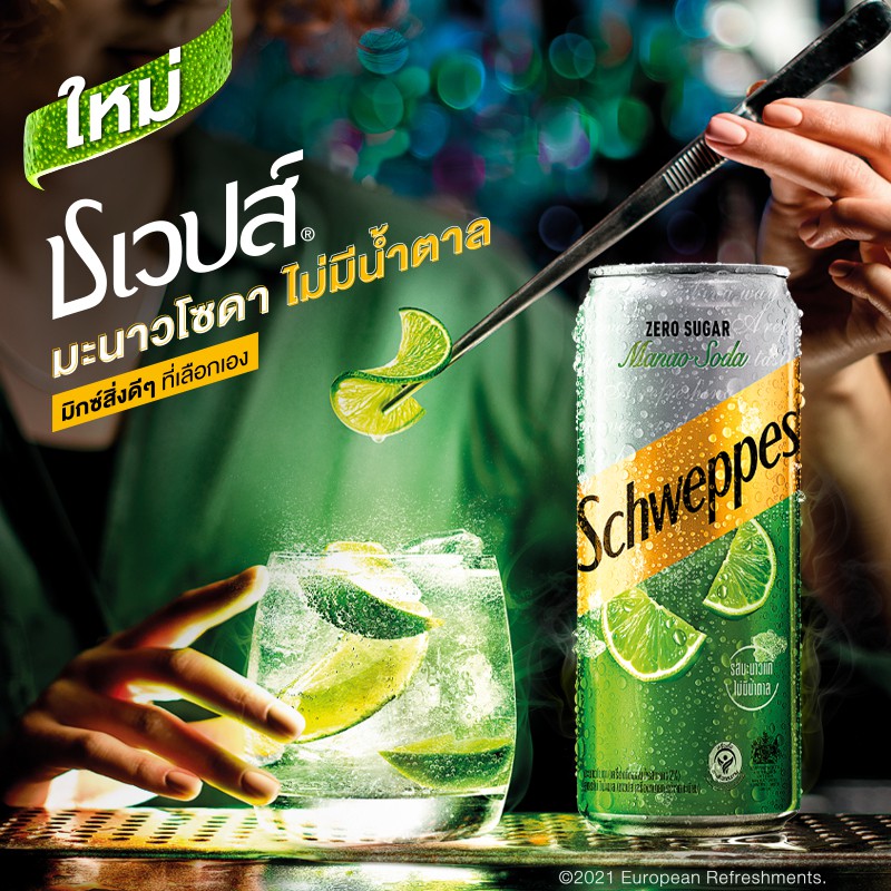 [Gift] ชเวปส์ น้ำอัดลม มะนาวโซดา สูตรไม่มีน้ำตาล 330 มล. Schweppes Soft Drink Lime Soda Zero Sugar 330ml