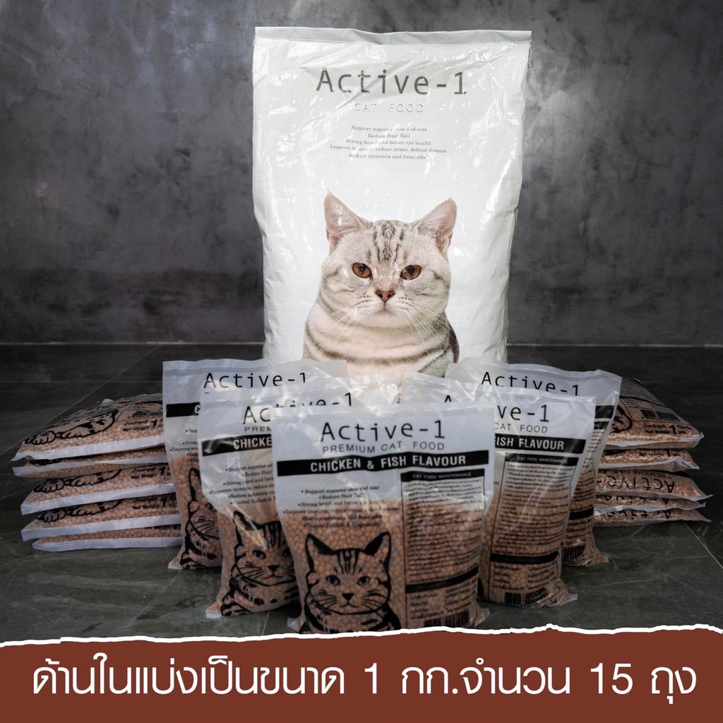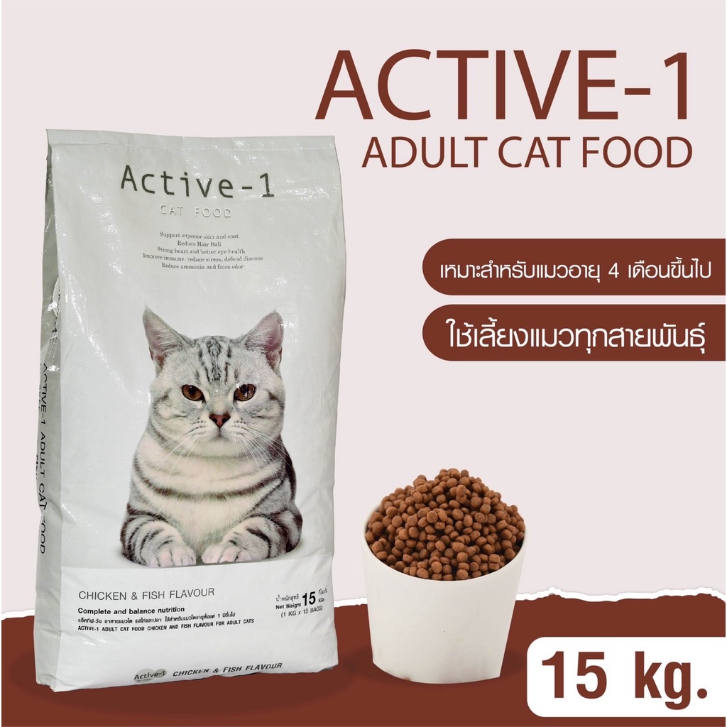 Active-1 แอคทีฟวัน อาหารแมว รสปลาและไก่ ขนาด 15 กก. (ขายดี)