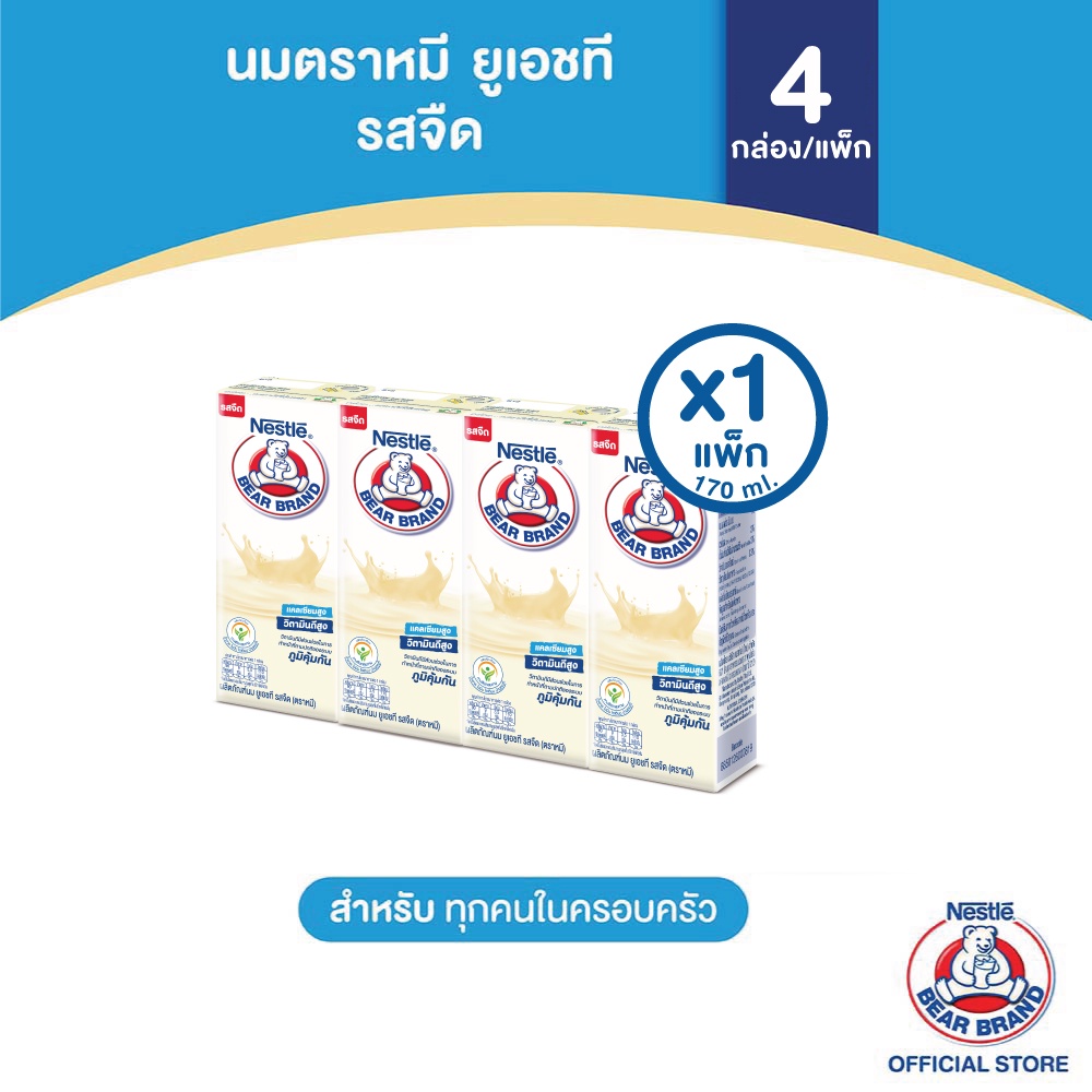 Bear Brand นมตราหมี ยูเอชที รสจืด 170 มล. แพ็ค 4