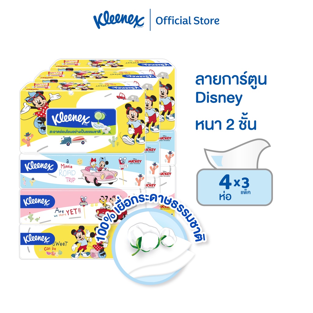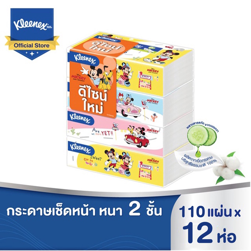 คลีเน็กซ์ กระดาษเช็ดหน้าหนา2ชั้น ลายดีสนีย์ 110แผ่น 4x3แพ็ค รวม12ห่อ Kleenex Facial Tissue Disney SoftBox 4x3(12Packs)