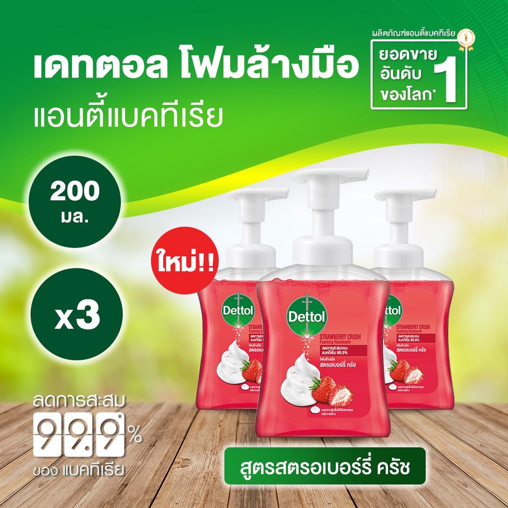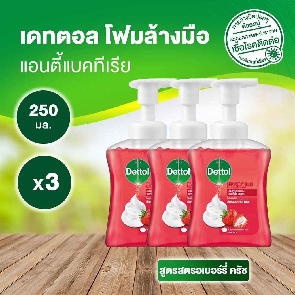 เดทตอล โฟมล้างมือ แอนตี้แบคทีเรีย สูตร สตรอเบอร์รี่ ครัช 250 มล. จำนวน 3 ขวด