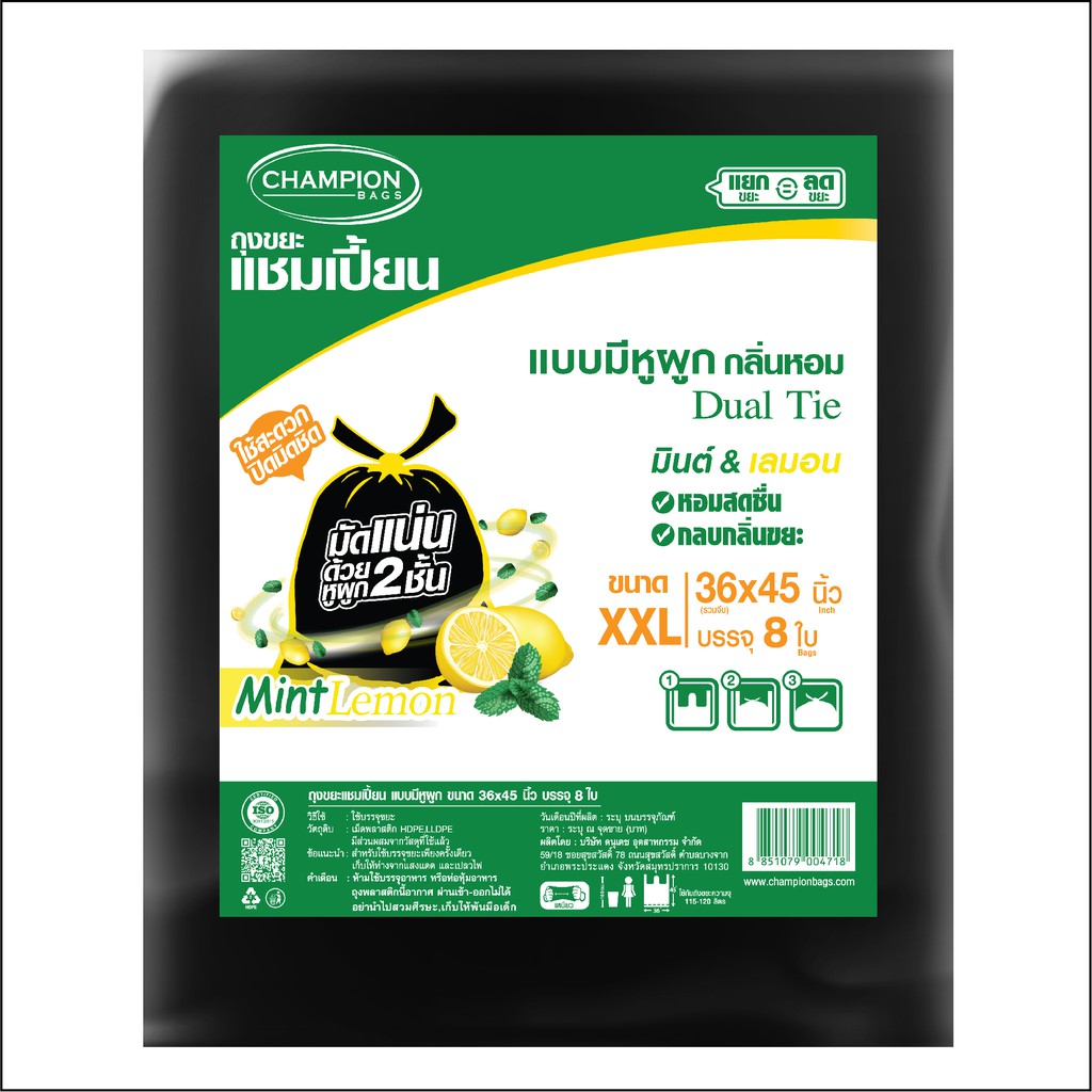 Champion bags ถุงขยะแชมเปี้ยน หูผูกกลิ่นมินต์&เลมอน 36"x45" 8 ใบ