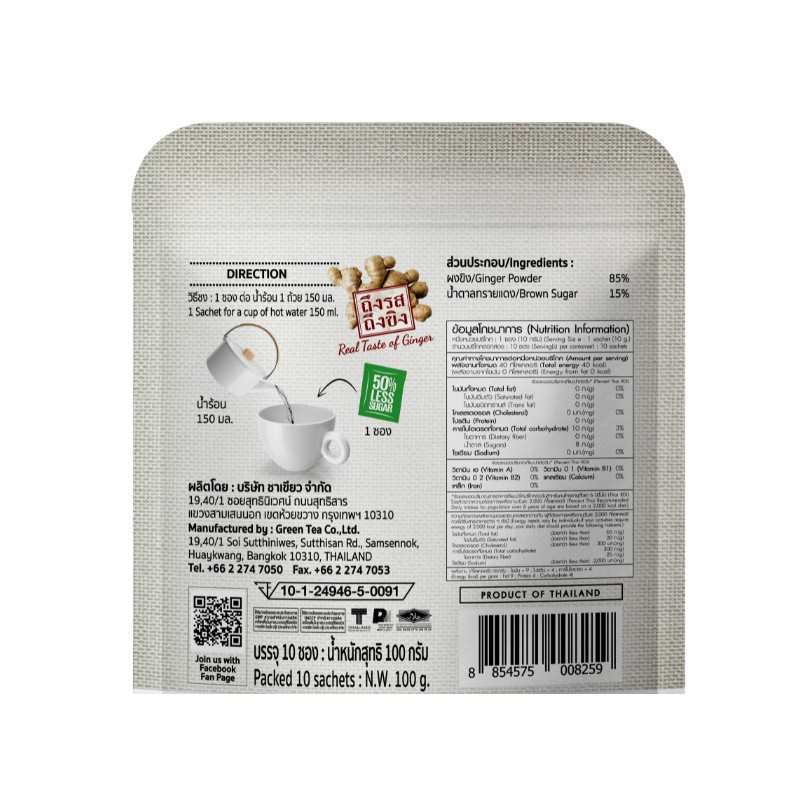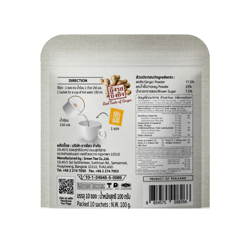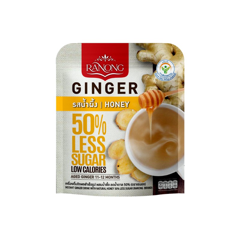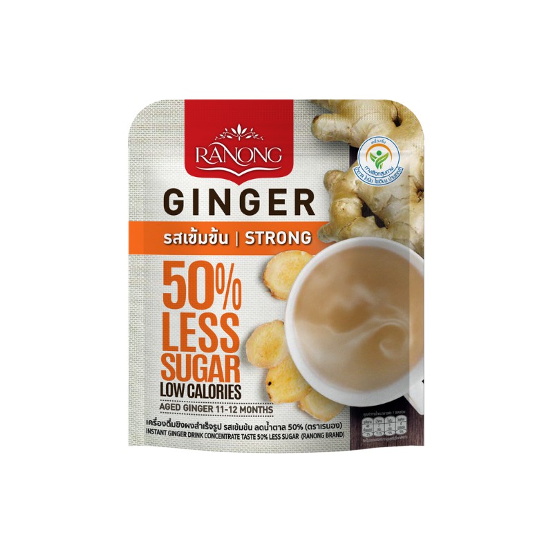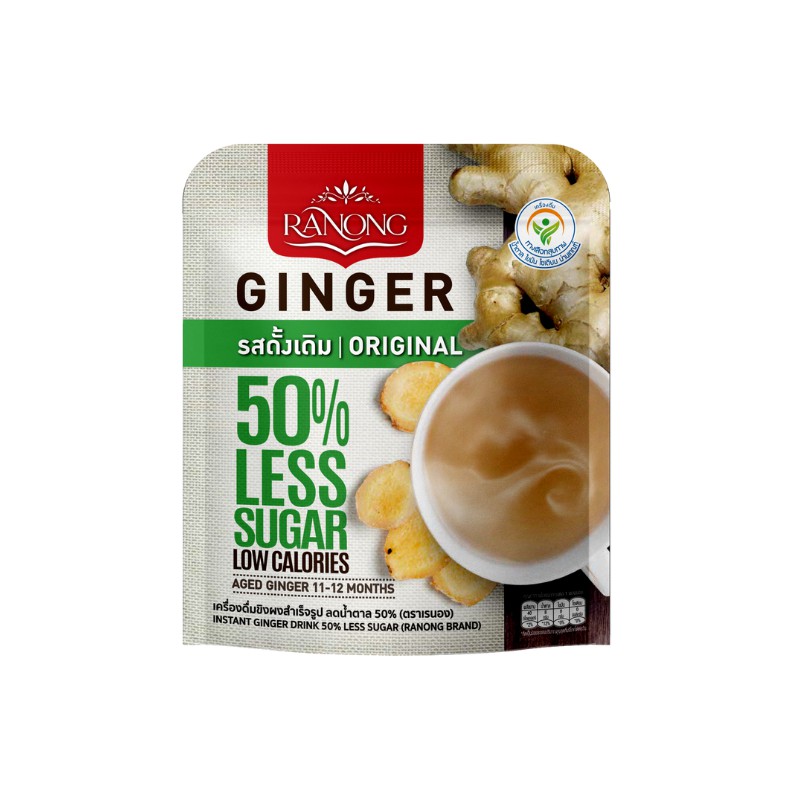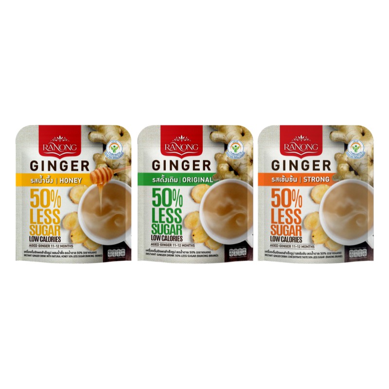 Ranong เรนองจิงเจอร์ ขิงผงสำเร็จรูป สูตรลดน้ำตาลลง 50% 100 กรัม x 10 ซอง (เลือกรสได้)
