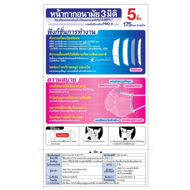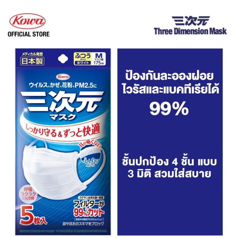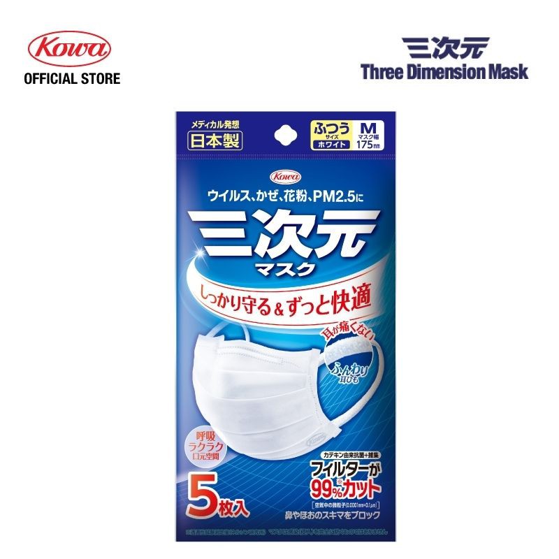 Kowa 3D Mask CTP (SIZE M White Color) - (5PCS/PACK) หน้ากากอนามัย 3 มิติ ซีทีพี (แพ็ค 5 ชิ้น) (M Size) สีขาว