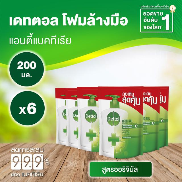 เดทตอล สบู่เหลวล้างมือ แอนตี้แบคทีเรีย ออริจินัล 200มล x6 (ถุงเติม)