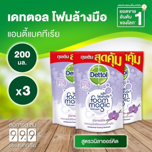 เดทตอล เมจิกโฟมล้างมือ กลิ่น วนิลาออร์คิด ถุงเติม 200 มล. (3 ถุง)
