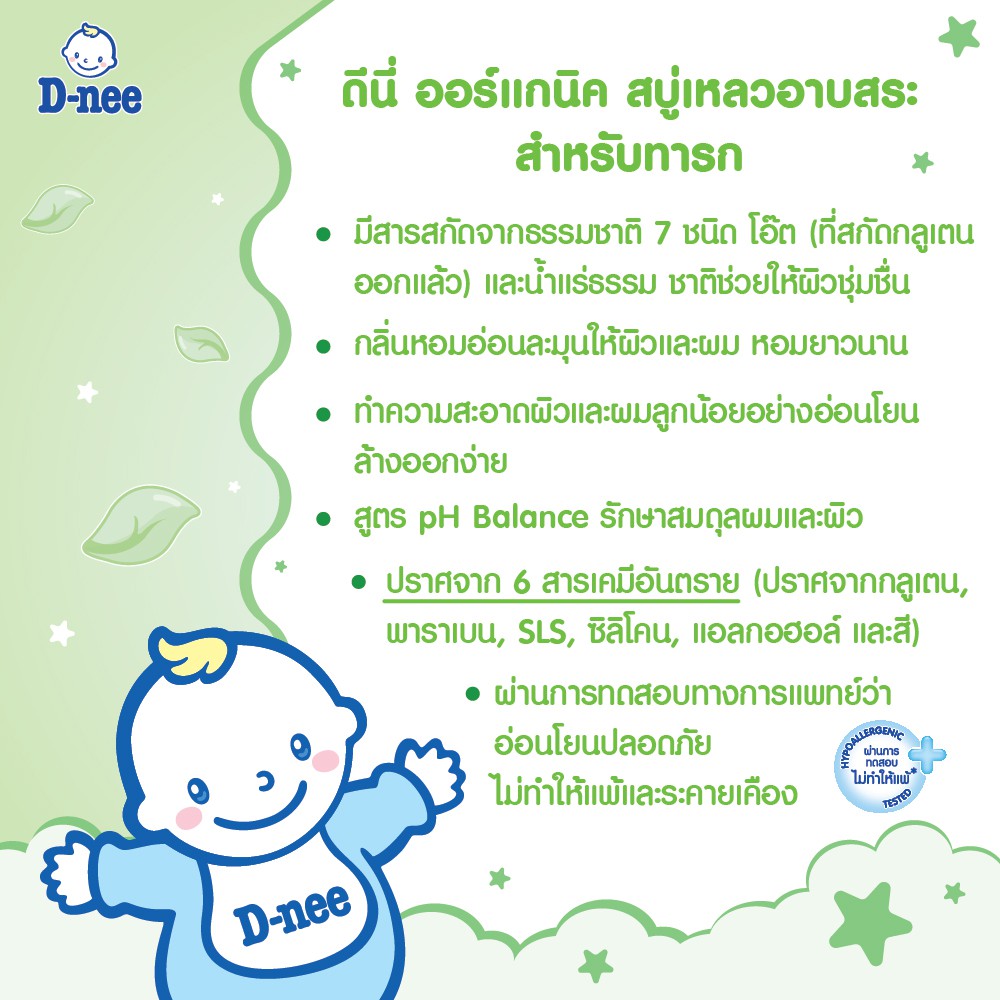 [ขายดี] D-nee ดีนี่ ออร์แกนิค ฟอร์ นิวบอร์น เฮดแอนด์บอดี้ เบบี้วอช สบู่เหลวและสระ ขนาด 800 มล.