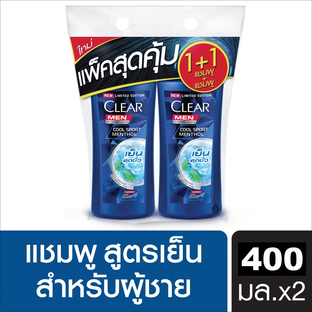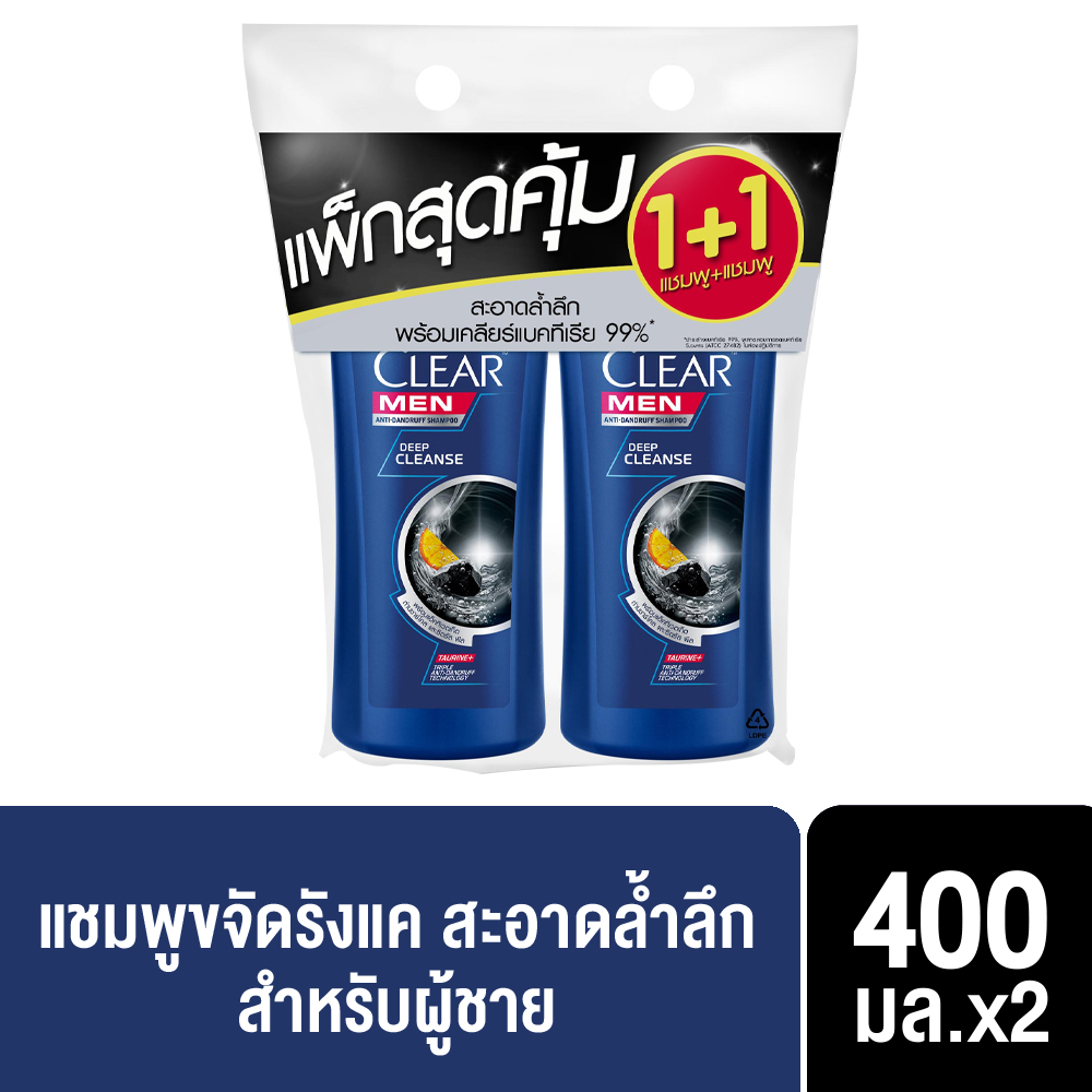Clear Men Shampoo เคลียร์ เมน แชมพูขจัดรังแค 400 มล. แพ็คคู่ (เลือกสูตร)