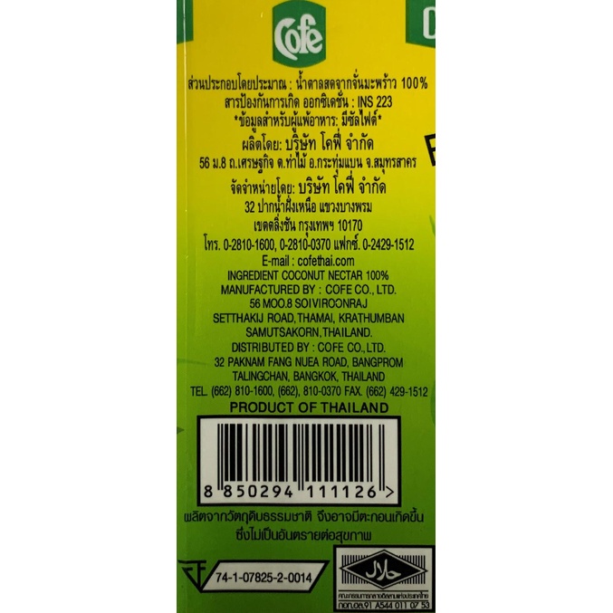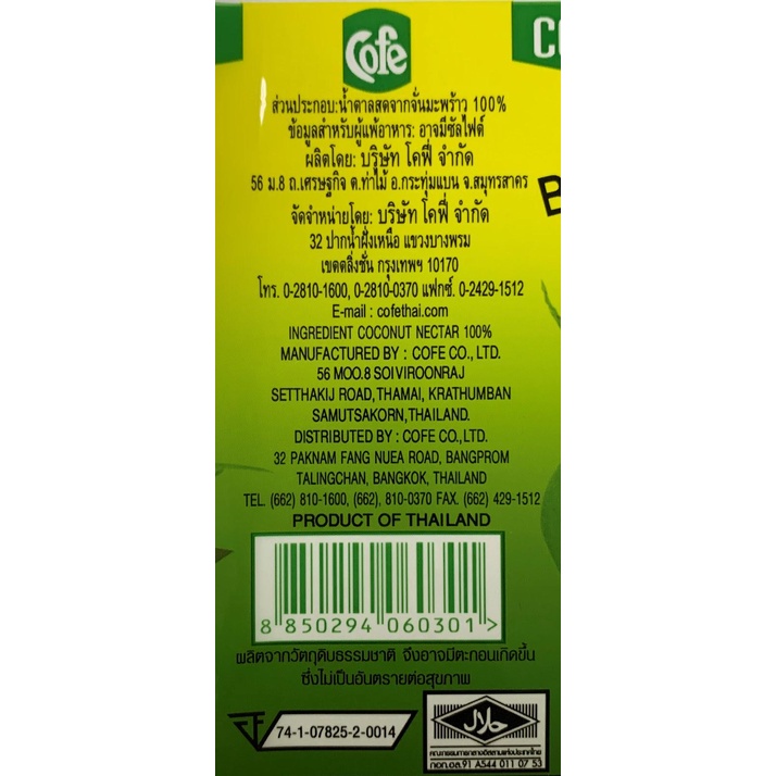Cofe Coconut Nectar 100% โคฟี่ น้ำตาลสด 100% 320 มล. x6 ขวด (เลือกรูปแบบขวด)