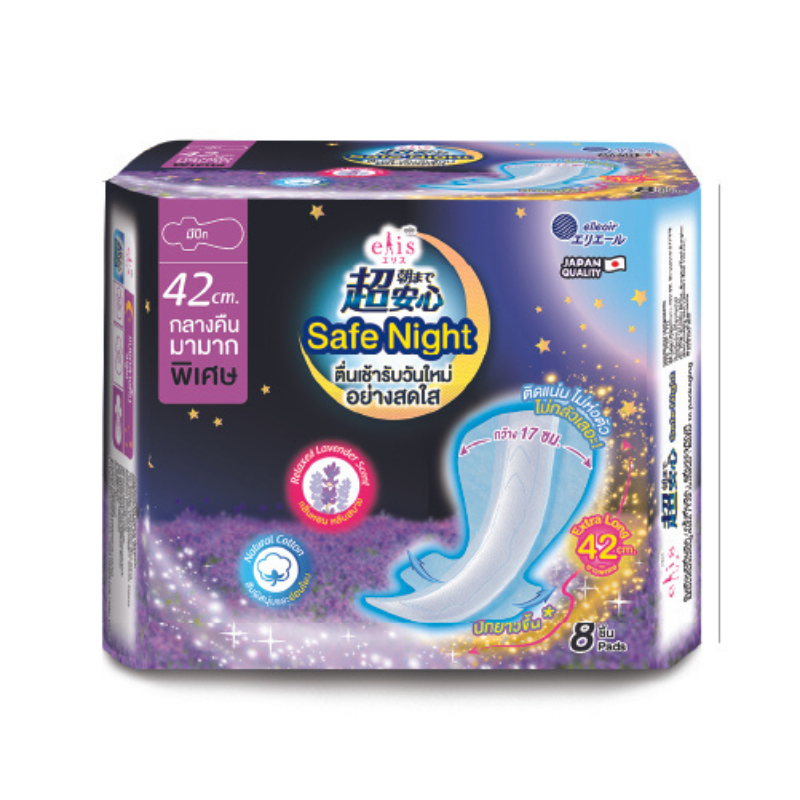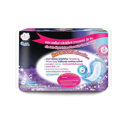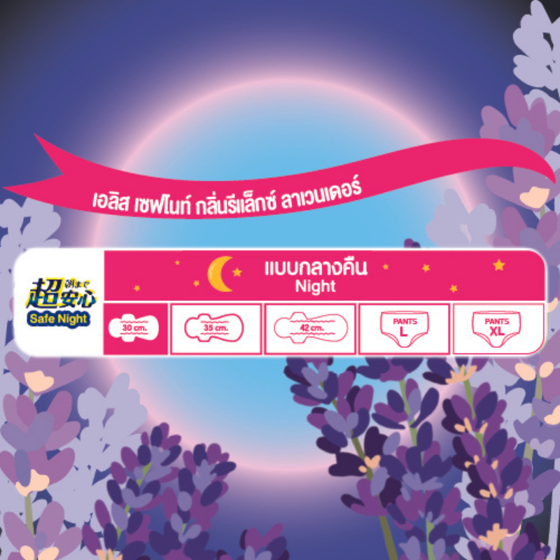 ELIS Safe Night Relaxed Lavender Scent Sanitary Napkin เอลิส เซฟไนท์กลิ่นรีแล็กซ์ลาเวนเดอร์ ผ้าอนามัย (เลือกขนาด)