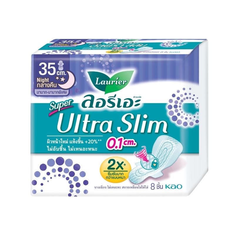 ลอรีเอะ ซูเปอร์ อัลตร้า สลิม กลางคืน บางเฉียบ 0.1 ยาว 35 ซม. มีปีก 8 ชิ้น (Sanitary napkin,ผ้าอนามัย)